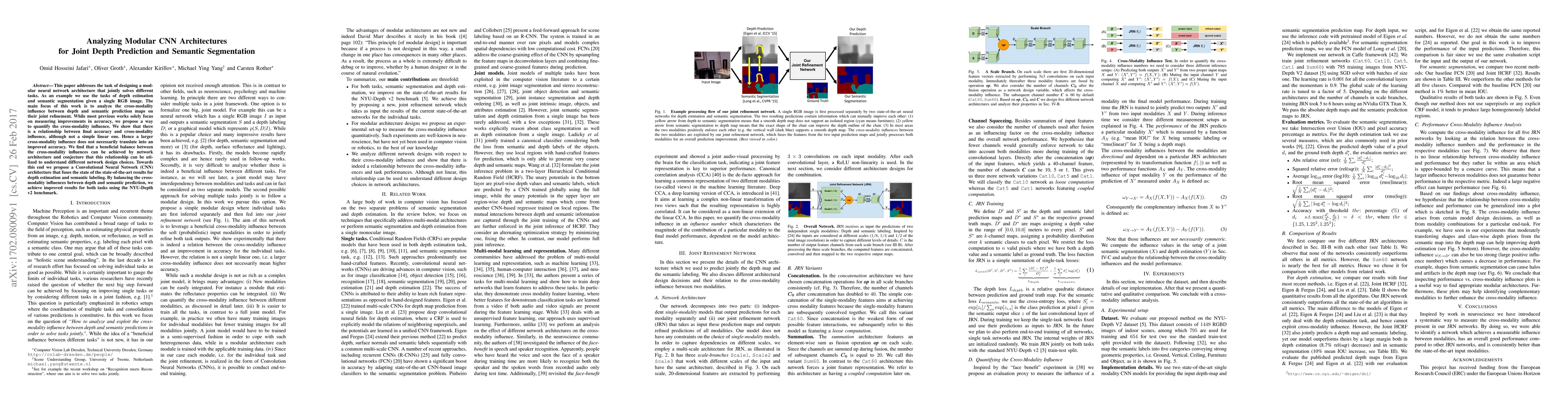 This research paper explores a modular Convolutional Neural Network (CNN) architecture designed to jointly solve depth estimation and semantic segmentation from a single RGB image. The study investigates the cross-modality influence between depth and semantic prediction maps, proposing a method to quantify this relationship and demonstrating that a beneficial balance can lead to improved results for both tasks, as shown on the NYU-Depth v2 benchmark.