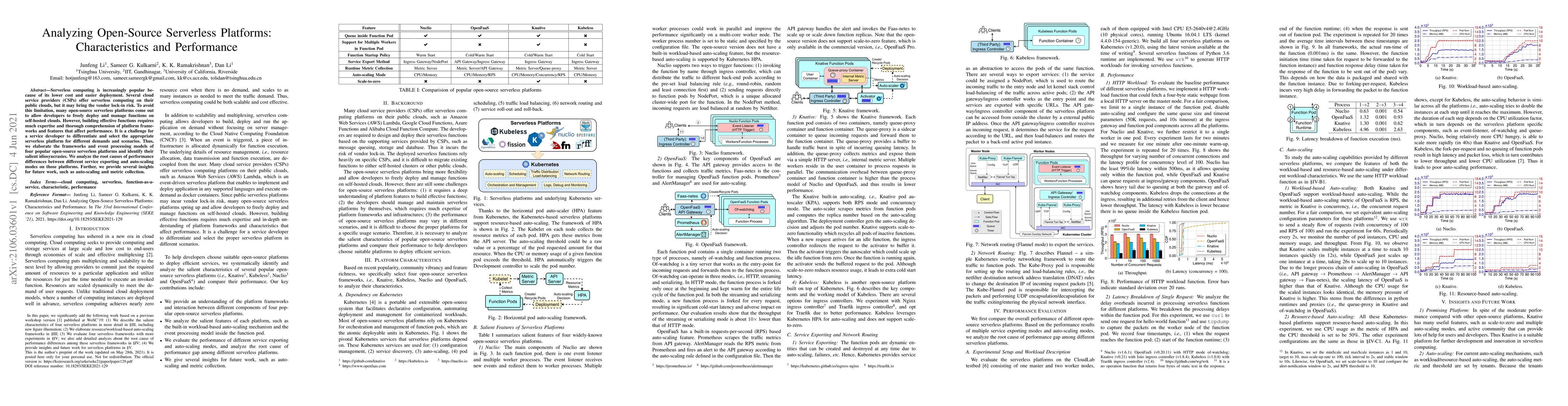 This research examines four popular open-source serverless platforms, analyzing their frameworks, event processing models, and performance under various service exporting and auto-scaling modes to aid developers in selecting the appropriate platform. It identifies key idiosyncrasies and provides insights for future auto-scaling and metric collection improvements.