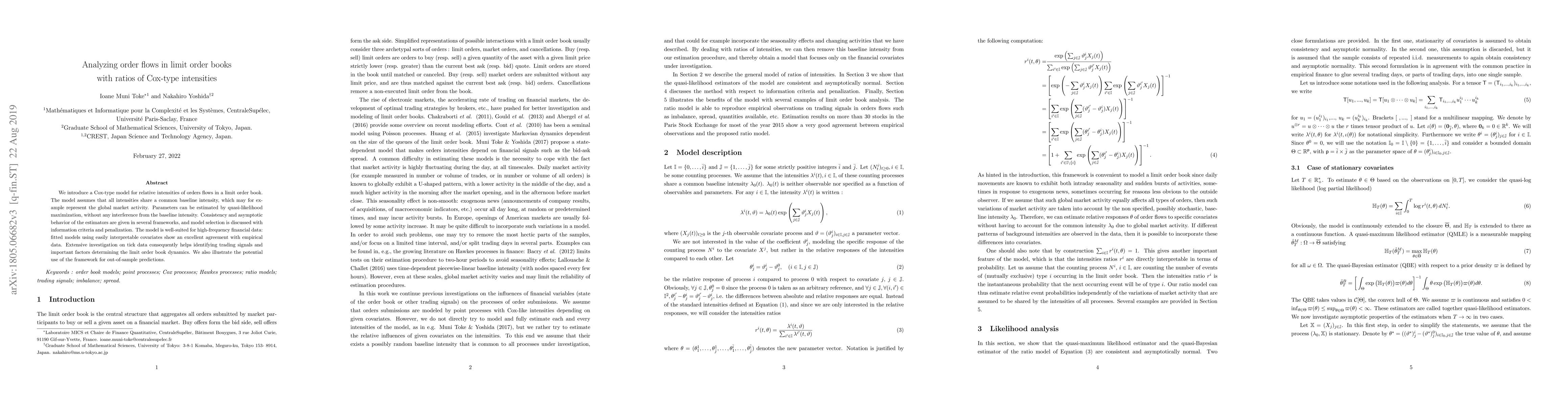 This paper proposes a Cox-type model to analyze relative intensities of order flows in limit order books, estimating parameters via quasi-likelihood maximization. The model identifies key trading signals and factors influencing order book dynamics, demonstrating its effectiveness for high-frequency financial data.