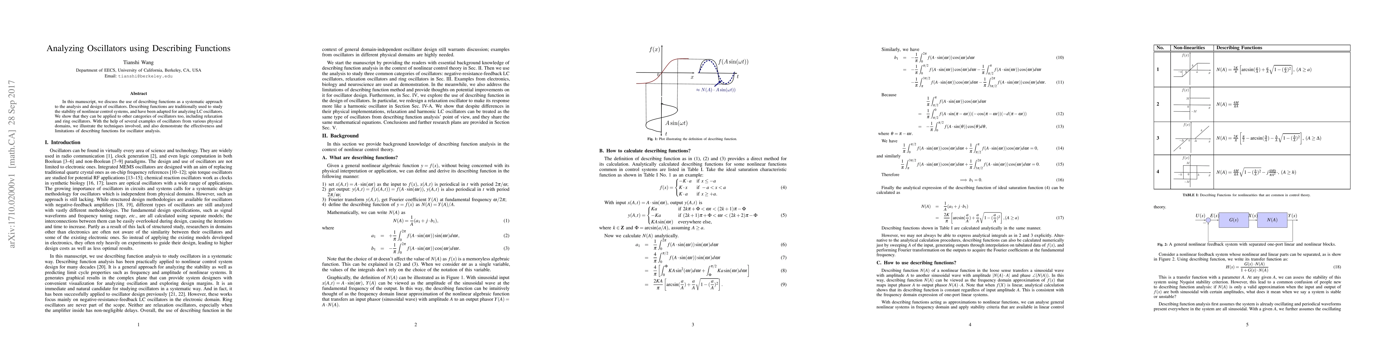 Researchers demonstrate using describing functions to analyze various types of oscillators, including LC, relaxation, and ring oscillators, highlighting their effectiveness and limitations.