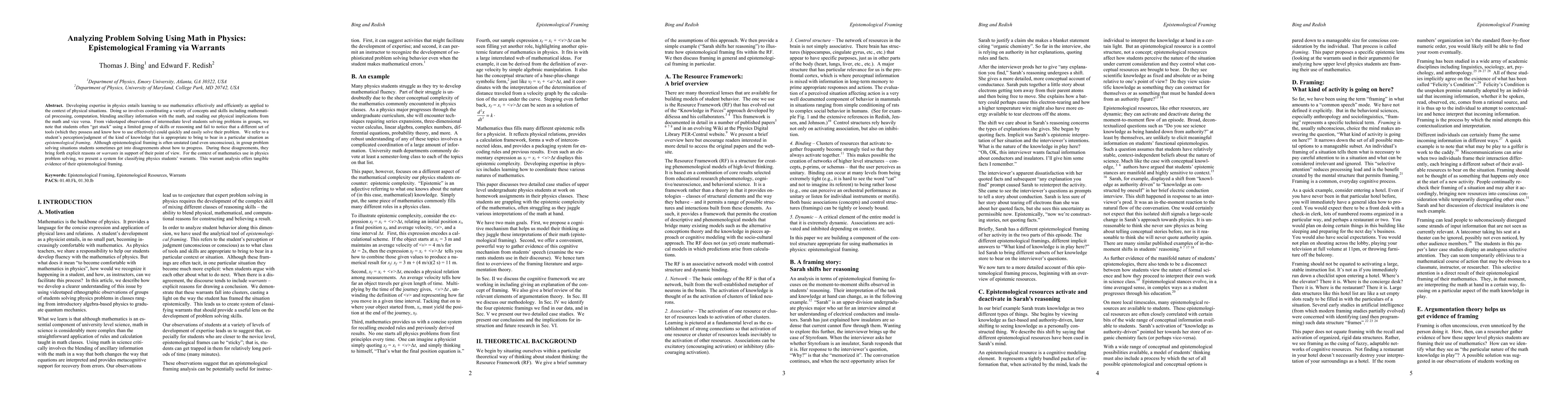 This study examines how intermediate physics students use mathematics to solve problems, focusing on their epistemological framing—the implicit judgment of which knowledge to apply. The analysis reveals that students often get stuck due to limited reasoning, and disagreements during group problem solving expose their explicit warrants, providing insight into their framing strategies.