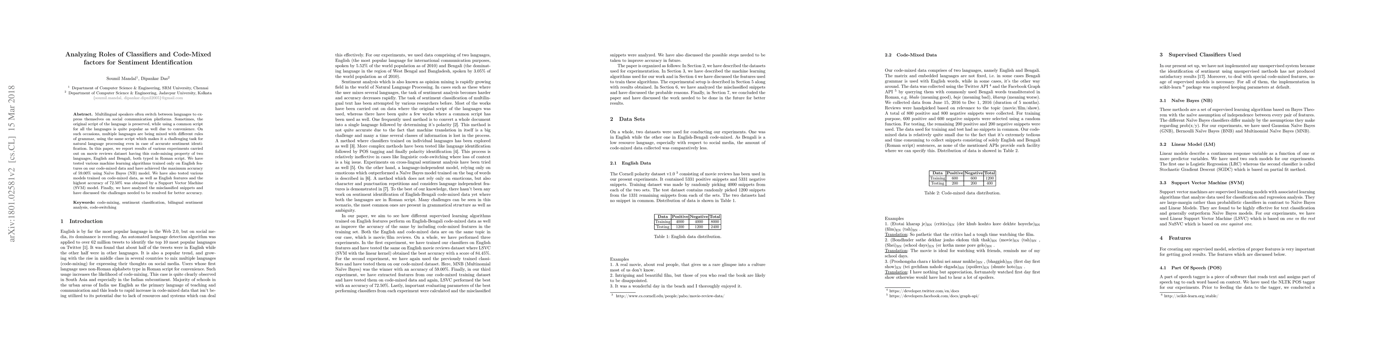 Researchers analyzed sentiment identification in code-mixed English-Bengali text using machine learning algorithms, achieving up to 72.50% accuracy with Support Vector Machine models. The study highlights the challenges of natural language processing in handling mixed languages.