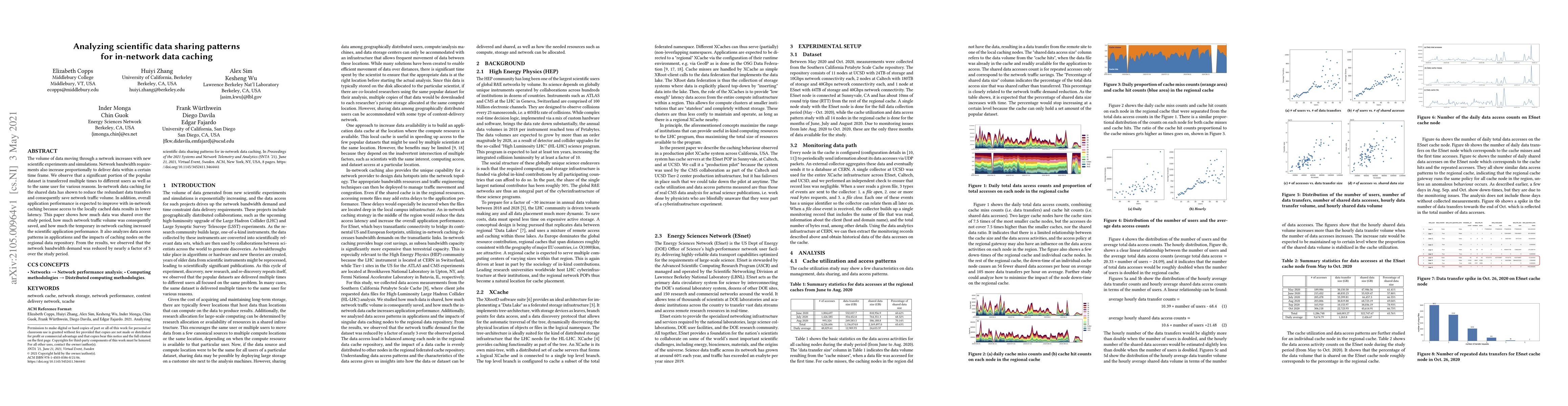 The volume of data moving through a network increases with new scientific experiments and simulations. Network bandwidth requirements also increase proportionally to deliver data within a certain time frame. We observe that a significant portion of the popular dataset is transferred multiple times to different users as well as to the same user for various reasons. In-network data caching for the shared data has shown to reduce the redundant data transfers and consequently save network traffic volume. In addition, overall application performance is expected to improve with in-network caching because access to the locally cached data results in lower latency. This paper shows how much data was shared over the study period, how much network traffic volume was consequently saved, and how much the temporary in-network caching increased the scientific application performance. It also analyzes data access patterns in applications and the impacts of caching nodes on the regional data repository. From the results, we observed that the network bandwidth demand was reduced by nearly a factor of 3 over the study period.