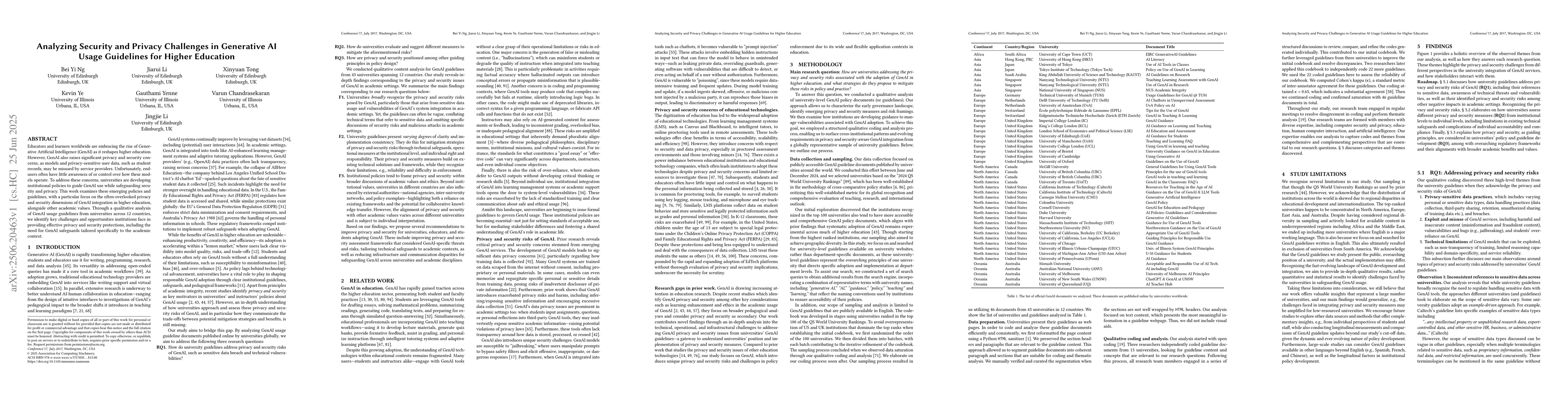 Educators and learners worldwide are embracing the rise of Generative Artificial Intelligence (GenAI) as it reshapes higher education. However, GenAI also raises significant privacy and security concerns, as models and privacy-sensitive user data, such as student records, may be misused by service providers. Unfortunately, end-users often have little awareness of or control over how these models operate. To address these concerns, universities are developing institutional policies to guide GenAI use while safeguarding security and privacy. This work examines these emerging policies and guidelines, with a particular focus on the often-overlooked privacy and security dimensions of GenAI integration in higher education, alongside other academic values. Through a qualitative analysis of GenAI usage guidelines from universities across 12 countries, we identify key challenges and opportunities institutions face in providing effective privacy and security protections, including the need for GenAI safeguards tailored specifically to the academic context.