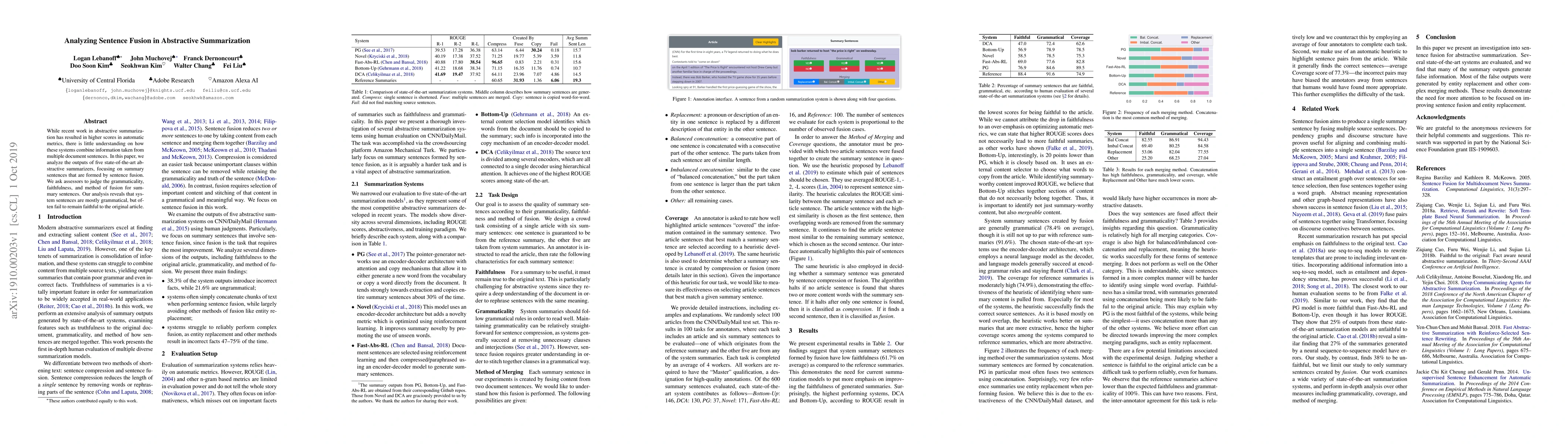 This paper examines how five leading abstractive summarization systems combine information from multiple sentences, finding that while the generated summary sentences are mostly grammatical, they often lack faithfulness to the original text.