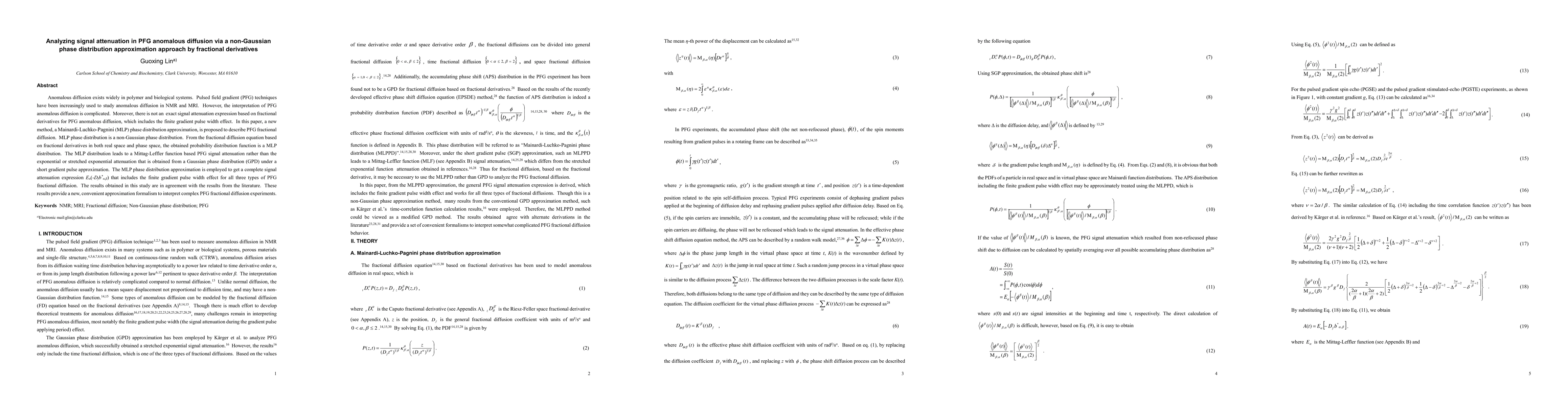 The paper introduces a novel MLP phase distribution approximation approach to describe PFG fractional diffusion, providing a complete signal attenuation expression that incorporates the finite gradient pulse width effect.