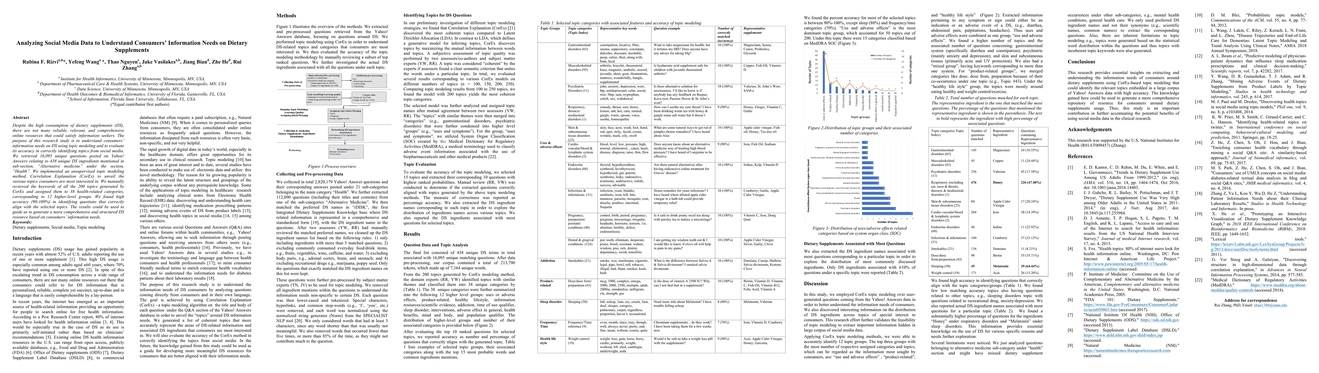 This research analyzes social media data to understand consumers' information needs regarding dietary supplements, employing topic modeling to identify key topics from 16,095 unique questions on Yahoo! Answers. The study found high accuracy in topic identification, suggesting a pathway to develop more comprehensive DS resources based on consumer queries.