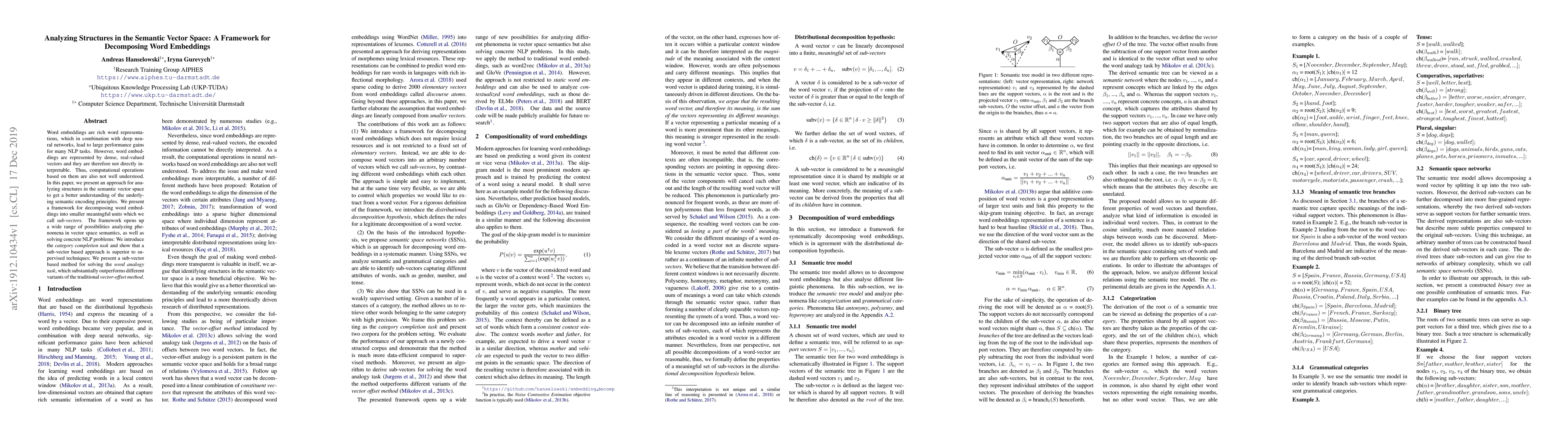 This paper proposes a framework for decomposing word embeddings into interpretable sub-vectors to better understand semantic encoding principles. It demonstrates the effectiveness of sub-vectors in solving NLP tasks like category completion and word analogy, outperforming traditional methods.