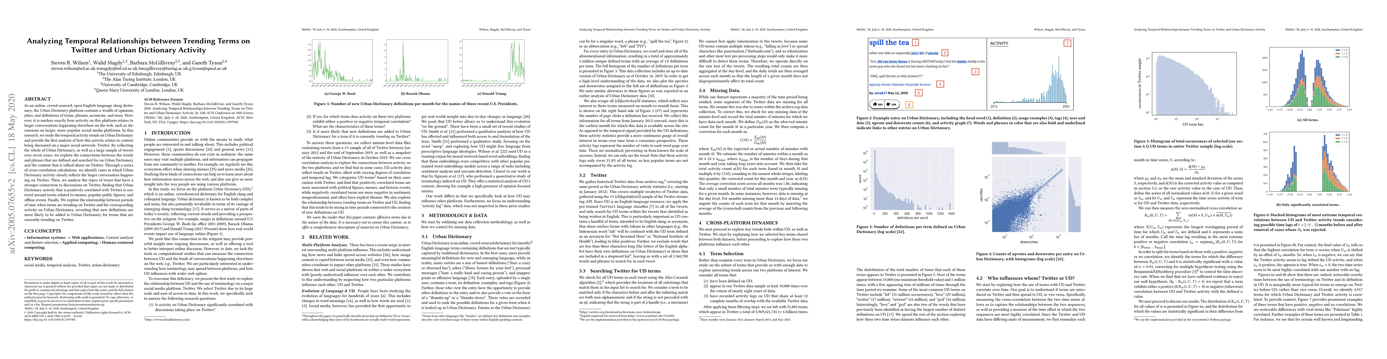 As an online, crowd-sourced, open English-language slang dictionary, the Urban Dictionary platform contains a wealth of opinions, jokes, and definitions of terms, phrases, acronyms, and more. However, it is unclear exactly how activity on this platform relates to larger conversations happening elsewhere on the web, such as discussions on larger, more popular social media platforms. In this research, we study the temporal activity trends on Urban Dictionary and provide the first analysis of how this activity relates to content being discussed on a major social network: Twitter. By collecting the whole of Urban Dictionary, as well as a large sample of tweets over seven years, we explore the connections between the words and phrases that are defined and searched for on Urban Dictionary and the content that is talked about on Twitter. Through a series of cross-correlation calculations, we identify cases in which Urban Dictionary activity closely reflects the larger conversation happening on Twitter. Then, we analyze the types of terms that have a stronger connection to discussions on Twitter, finding that Urban Dictionary activity that is positively correlated with Twitter is centered around terms related to memes, popular public figures, and offline events. Finally, We explore the relationship between periods of time when terms are trending on Twitter and the corresponding activity on Urban Dictionary, revealing that new definitions are more likely to be added to Urban Dictionary for terms that are currently trending on Twitter.