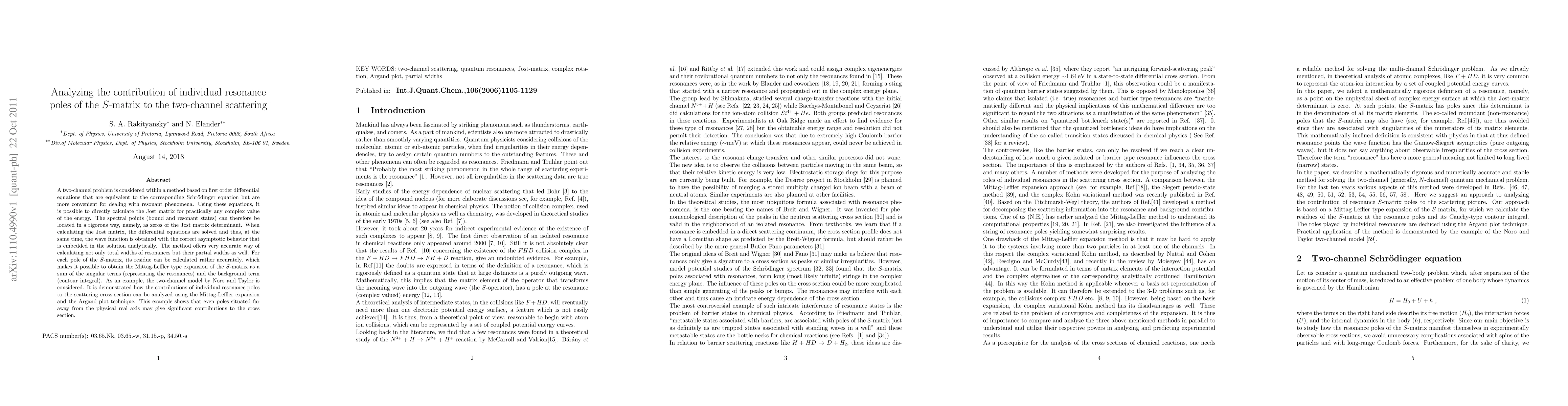 Researchers developed a method to analyze individual resonance poles in a two-channel scattering problem, allowing for accurate calculation of resonance widths and partial widths, as well as the contribution of each pole to the overall scattering cross section.