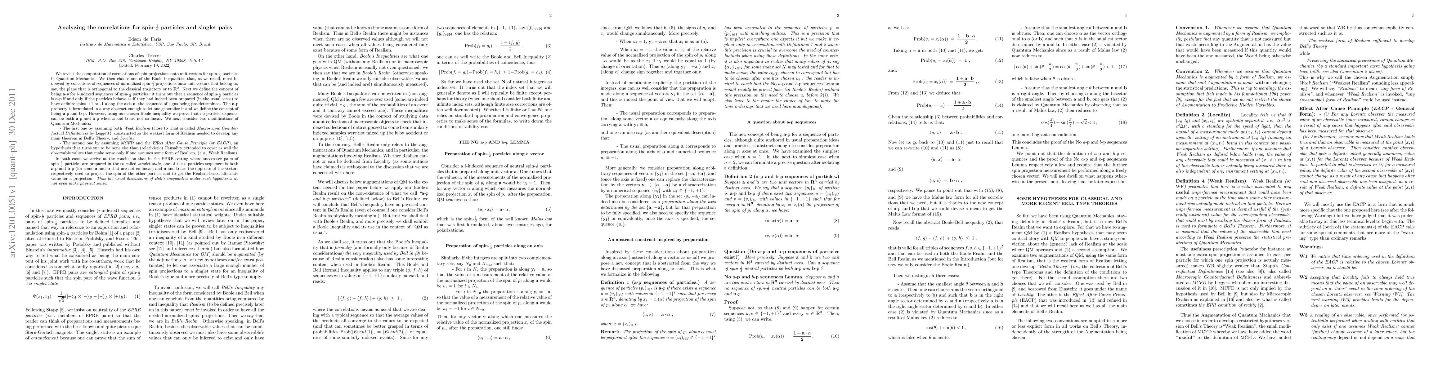 We revisit the computation of correlations of spin projections onto unit vectors for spin-1/2 particles in Quantum Mechanics. We then choose one of the Boole inequalities that, as we recall, must be obeyed by collections of sequences of normalized spin-1/2 projections onto unit vectors that belong to, say, the plane that is orthogonal to the classical trajectory or to the three dimensional space. Next we define the concept of being a-p for i-indexed sequences of spin-1/2 particles: it turns out that a sequence of spin-1/2 particles is a-p if and only if the particles behave as if they had indeed been prepared (in the usual sense) to have definite spins +1 or -1 along the axis a, the sequence of signs being pre-determined. The a-p property is formulated in a way abstract enough to let one generalize it and we define the concept of being a-p and b-p. However, using our chosen Boole inequality we prove that no particle sequence can be both a-p and b-p when a and b are not co-linear. We next consider two modifications of Quantum Mechanics: - The first one by assuming both Weak Realism, the weakest form of Realism needed to develop any main theorem in Bell's Theory, and Locality. - The second one by assuming Weak Realism and an hypothesis that turns out to be none else than (relativistic) Causality extended to cover as well the observable values that make sense only if one assumes Weak Realism. In both cases we arrive at the conclusion that in the EPRB setting where successive pairs of spin-1/2 particles are prepared in the so-called singlet state, one of these particles sequences is both a-p and b-p and a and b are the opposite of the vectors respectively used to project the spin of the other particle and to get the Realism-based alternate value for a projection. Thus the usual discussions of Bell's inequalities under such hypotheses do not even make physical sense.