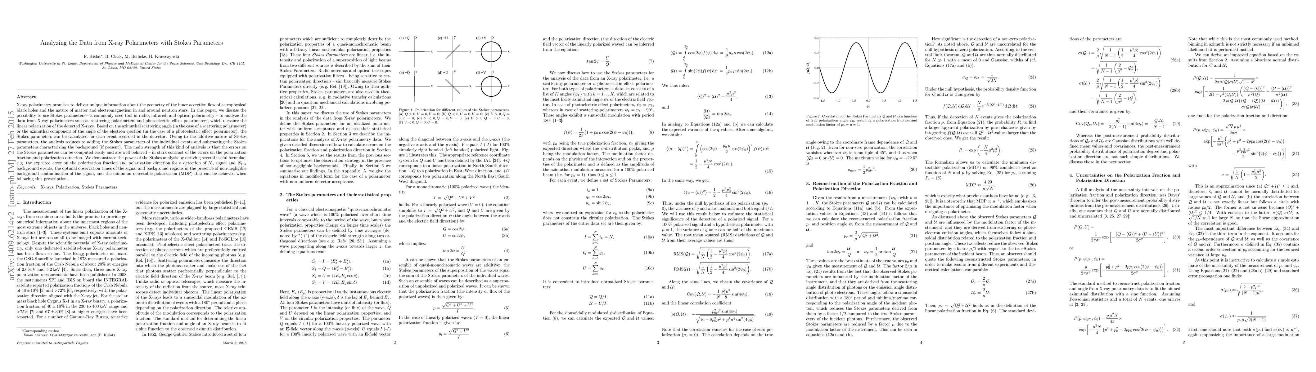 X-ray polarimetry promises to deliver unique information about the geometry of the inner accretion flow of astrophysical black holes and the nature of matter and electromagnetism in and around neutron stars. In this paper, we discuss the possibility to use Stokes parameters - a commonly used tool in radio, infrared, and optical polarimetry - to analyze the data from X-ray polarimeters such as scattering polarimeters and photoelectric effect polarimeters, which measure the linear polarization of the detected X-rays. Based on the azimuthal scattering angle (in the case of a scattering polarimeter) or the azimuthal component of the angle of the electron ejection (in the case of a photoelectric effect polarimeter), the Stokes parameters can be calculated for each event recorded in the detector. Owing to the additive nature of Stokes parameters, the analysis reduces to adding the Stokes parameters of the individual events and subtracting the Stokes parameters characterizing the background (if present). The main strength of this kind of analysis is that the errors on the Stokes parameters can be computed easily and are well behaved - in stark contrast of the errors on the polarization fraction and polarization direction. We demonstrate the power of the Stokes analysis by deriving several useful formulae, e.g. the expected error on the polarization fraction and polarization direction for a detection of $N_S$ signal and $N_{BG}$ background events, the optimal observation times of the signal and background regions in the presence of non-negligible background contamination of the signal, and the minimum detectable polarization (MDP) that can be achieved when following this prescription.