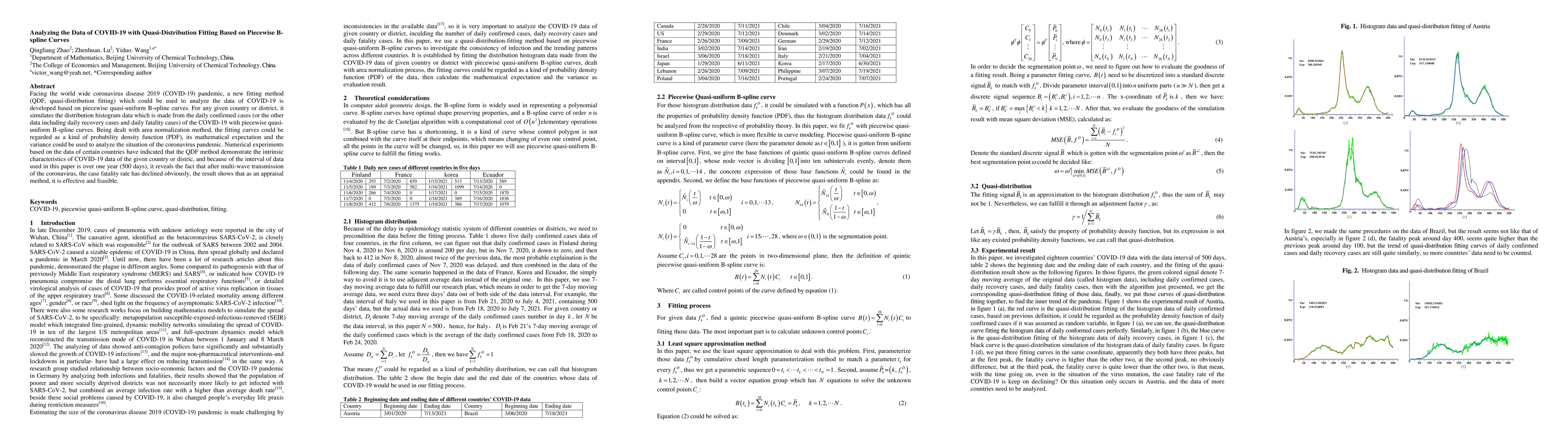 Facing the world wide coronavirus disease 2019 (COVID-19) pandemic, a new fitting method (QDF, quasi-distribution fitting) which could be used to analyze the data of COVID-19 is developed based on piecewise quasi-uniform B-spline curves. For any given country or district, it simulates the distribution histogram data which is made from the daily confirmed cases (or the other data including daily recovery cases and daily fatality cases) of the COVID-19 with piecewise quasi-uniform B-spline curves. Being dealt with area normalization method, the fitting curves could be regarded as a kind of probability density function (PDF), its mathematical expectation and the variance could be used to analyze the situation of the coronavirus pandemic. Numerical experiments based on the data of certain countries have indicated that the QDF method demonstrate the intrinsic characteristics of COVID-19 data of the given country or distric, and because of the interval of data used in this paper is over one year (500 days), it reveals the fact that after multi-wave transmission of the coronavirus, the case fatality rate has declined obviously, the result shows that as an appraisal method, it is effective and feasible.