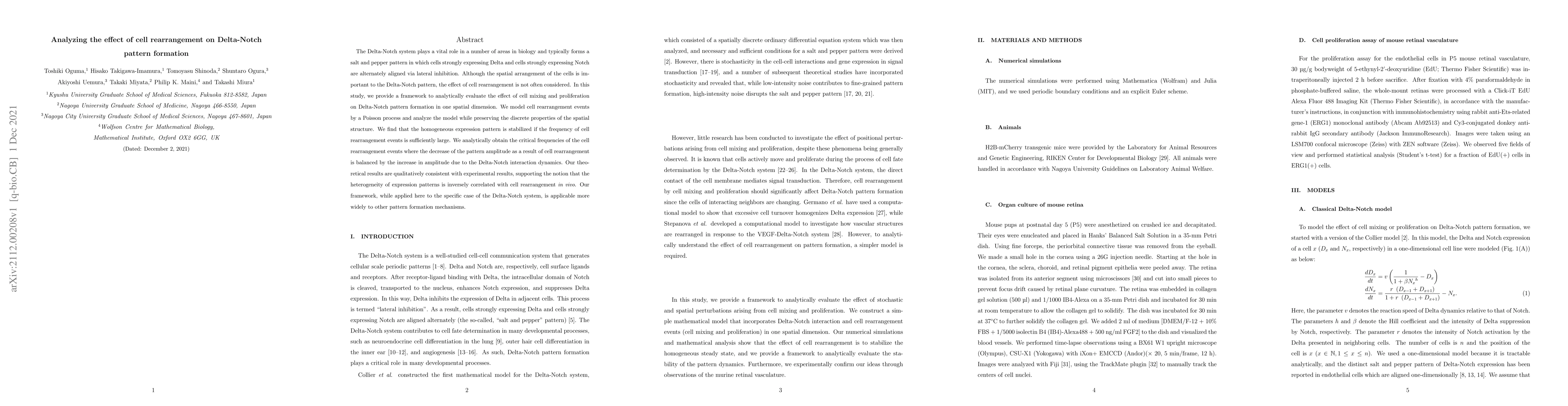This study analytically evaluates how cell rearrangement impacts Delta-Notch pattern formation, finding that frequent cell mixing stabilizes homogeneous expression patterns, with critical frequencies balancing pattern disruption and enhancement. The theoretical framework is consistent with experimental results and applicable to other pattern formation mechanisms.
