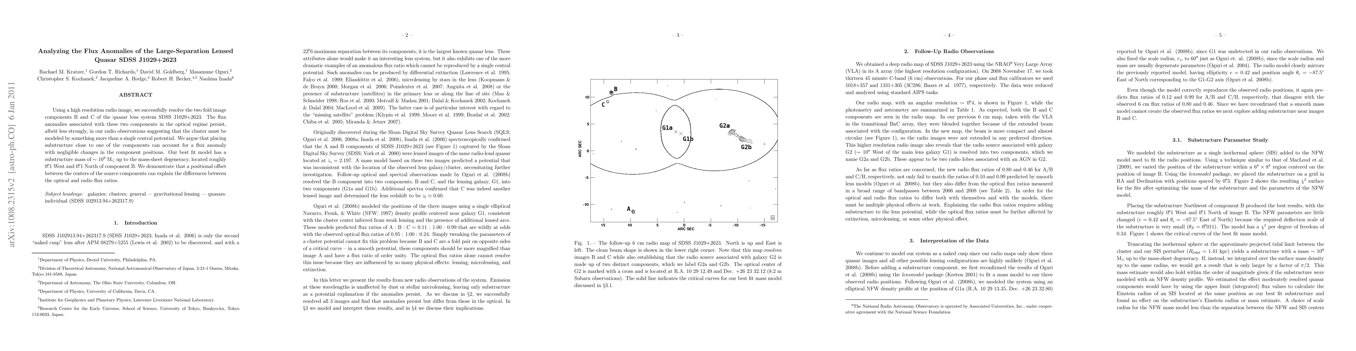 Researchers analyzed the lensed quasar SDSS J1029+2623 using radio images, finding a substructure mass of ~10^8 solar masses near component B that explains flux anomalies in both optical and radio regimes.