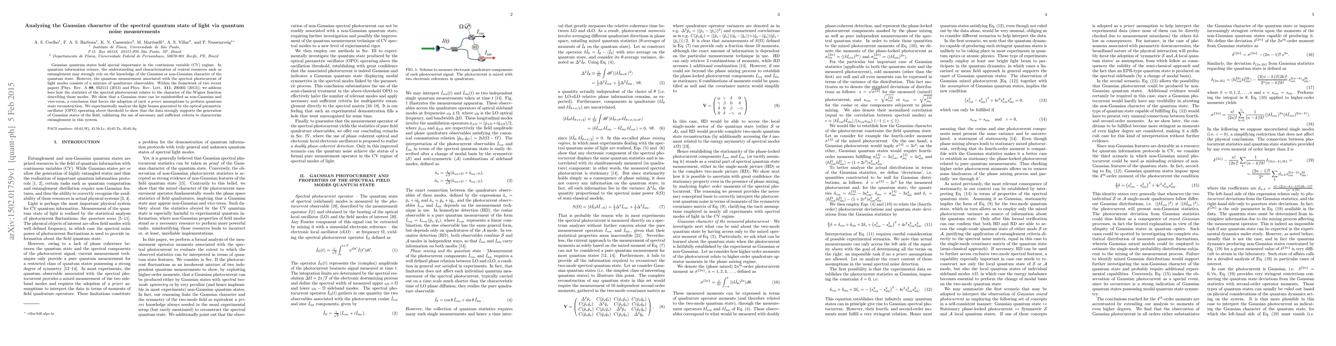 Gaussian quantum states hold special importance in the continuous variable (CV) regime. In quantum information science, the understanding and characterization of central resources such as entanglement may strongly rely on the knowledge of the Gaussian or non-Gaussian character of the quantum state. However, the quantum measurement associated with the spectral photocurrent of light modes consists of a mixture of quadrature observables. Within the framework of two recent papers [Phys. Rev. A 88, 052113 (2013) and Phys. Rev. Lett. 111, 200402 (2013)], we address here how the statistics of the spectral photocurrent relates to the character of the Wigner function describing those modes. We show that a Gaussian state can be misidentified as non-Gaussian and vice-versa, a conclusion that forces the adoption of tacit \textit{a priori} assumptions to perform quantum state reconstruction. We experimentally analyze the light beams generated by the optical parametric oscillator (OPO) operating above threshold to show that the data strongly supports the generation of Gaussian states of the field, validating the use of necessary and sufficient criteria to characterize entanglement in this system.