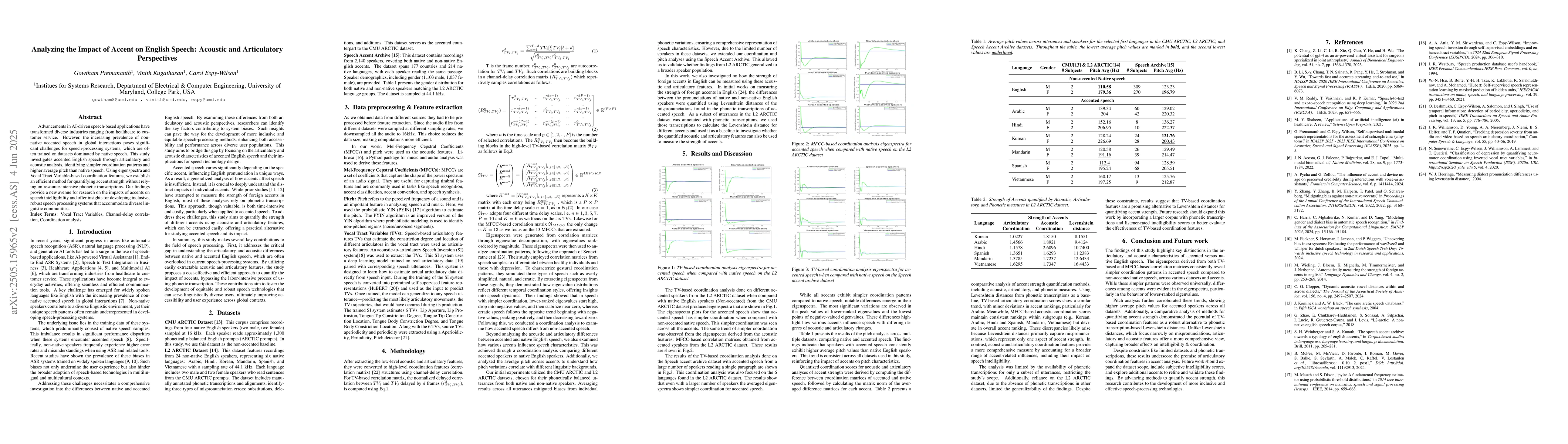 The study employs articulatory and acoustic analysis using eigenspectra and Vocal Tract Variable-based coordination features to quantify accent strength in English speech.