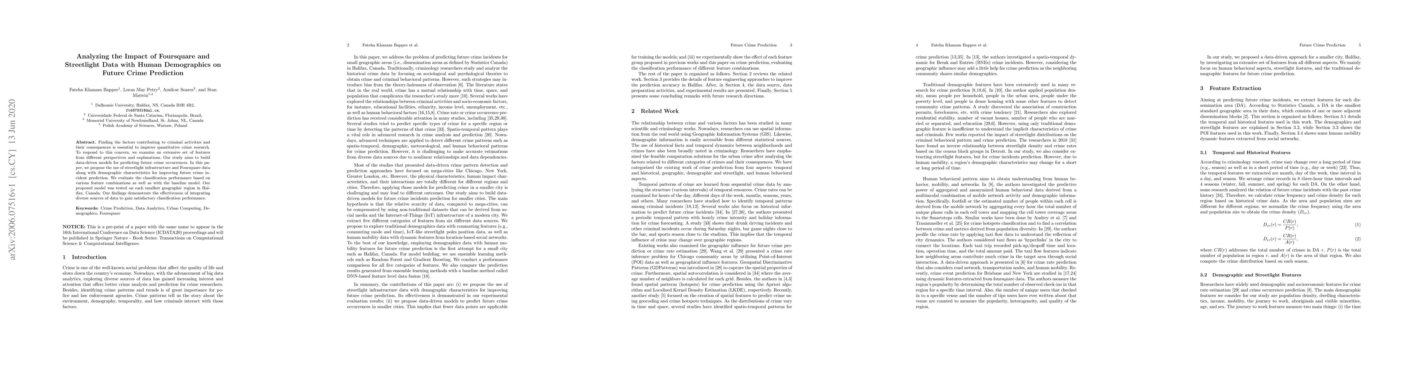 This paper proposes a data-driven model to predict future crime incidents by integrating Foursquare and streetlight data with human demographics. The study demonstrates improved classification performance in predicting crime in Halifax, Canada, by combining diverse data sources.