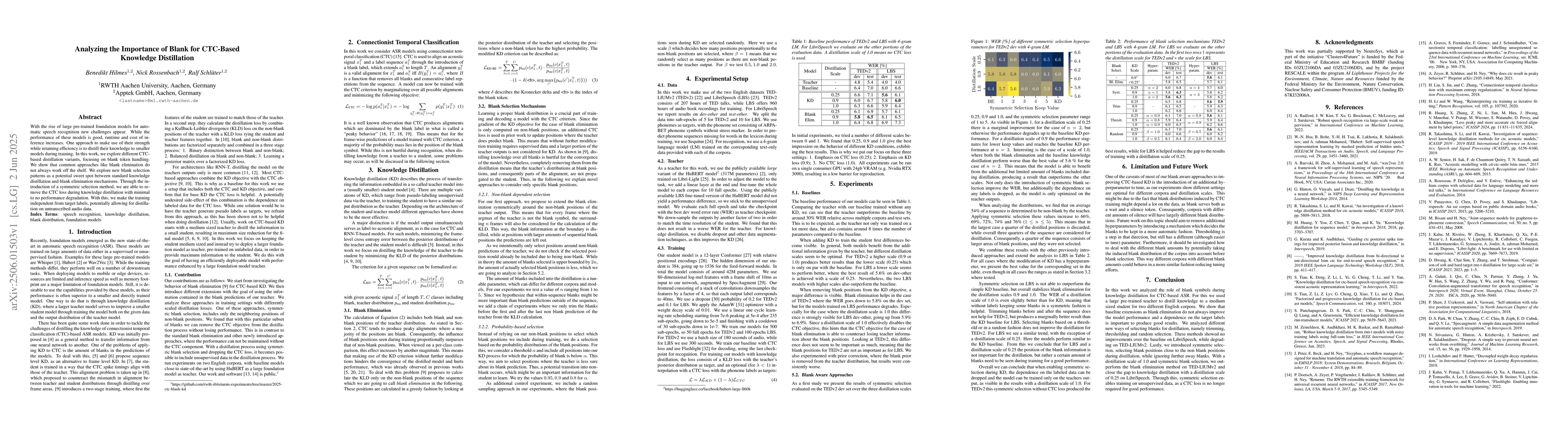 Researchers explored new methods to distill knowledge from large pre-trained models for automatic speech recognition, focusing on handling blank tokens in CTC-based knowledge distillation. They introduced a symmetric selection method that removes CTC loss with minimal performance degradation, enabling training independent of target labels.