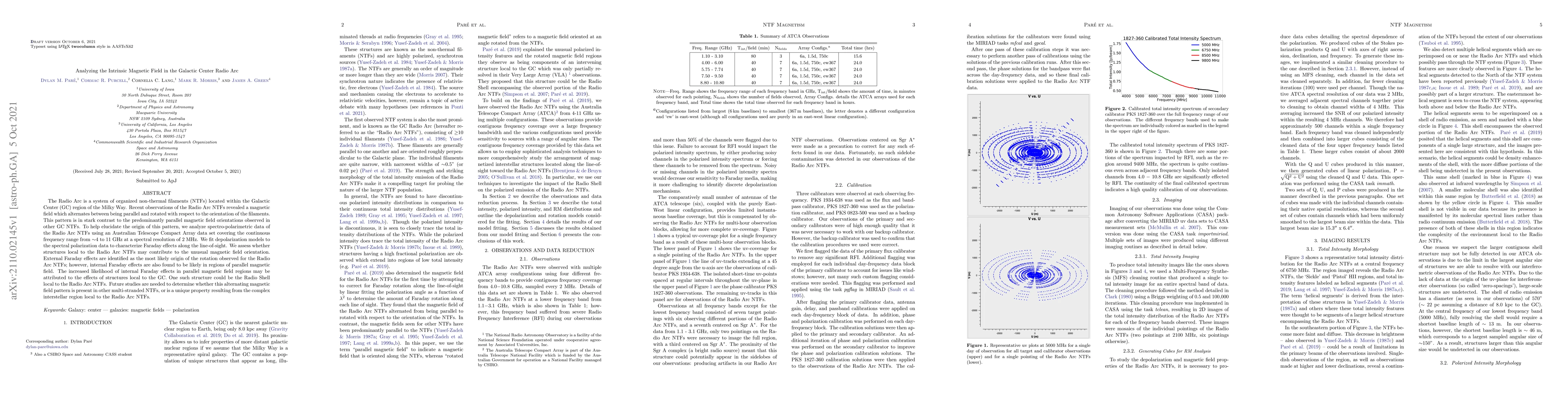 This study analyzes the intrinsic magnetic field in the Galactic Center Radio Arc, revealing a unique alternating magnetic field pattern between parallel and rotated orientations. Spectro-polarimetric data suggest external Faraday effects as the primary cause of the rotation, while internal effects contribute to parallel magnetic fields, possibly influenced by local GC structures like the Radio Shell.