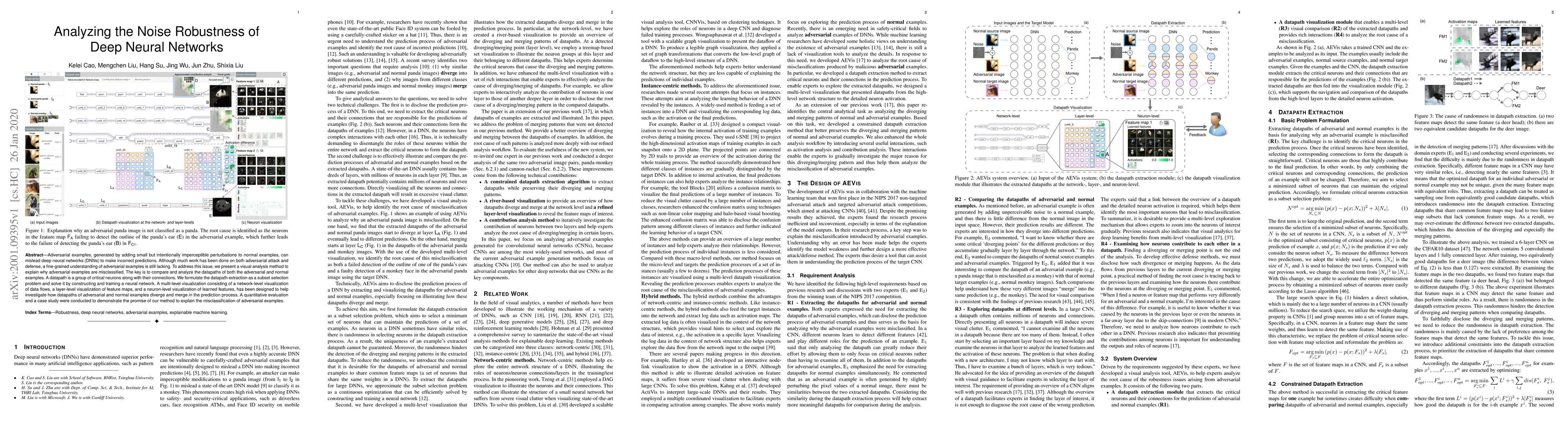 Adversarial examples, generated by adding small but intentionally imperceptible perturbations to normal examples, can mislead deep neural networks (DNNs) to make incorrect predictions. Although much work has been done on both adversarial attack and defense, a fine-grained understanding of adversarial examples is still lacking. To address this issue, we present a visual analysis method to explain why adversarial examples are misclassified. The key is to compare and analyze the datapaths of both the adversarial and normal examples. A datapath is a group of critical neurons along with their connections. We formulate the datapath extraction as a subset selection problem and solve it by constructing and training a neural network. A multi-level visualization consisting of a network-level visualization of data flows, a layer-level visualization of feature maps, and a neuron-level visualization of learned features, has been designed to help investigate how datapaths of adversarial and normal examples diverge and merge in the prediction process. A quantitative evaluation and a case study were conducted to demonstrate the promise of our method to explain the misclassification of adversarial examples.