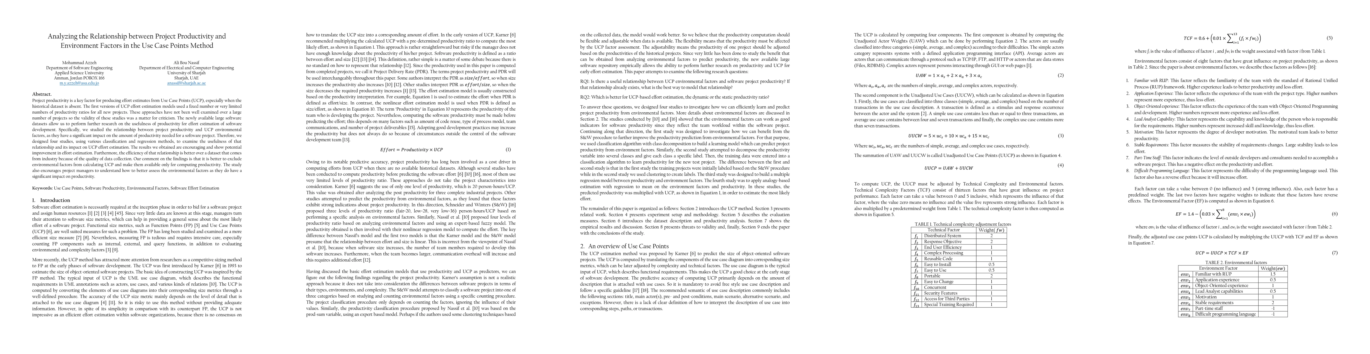 This paper examines the relationship between project productivity and environmental factors in the Use Case Points (UCP) method, revealing that excluding environmental factors from UCP calculations and using them solely for productivity estimation can improve effort estimation accuracy. The study highlights the importance of understanding environmental factors for better productivity assessment.