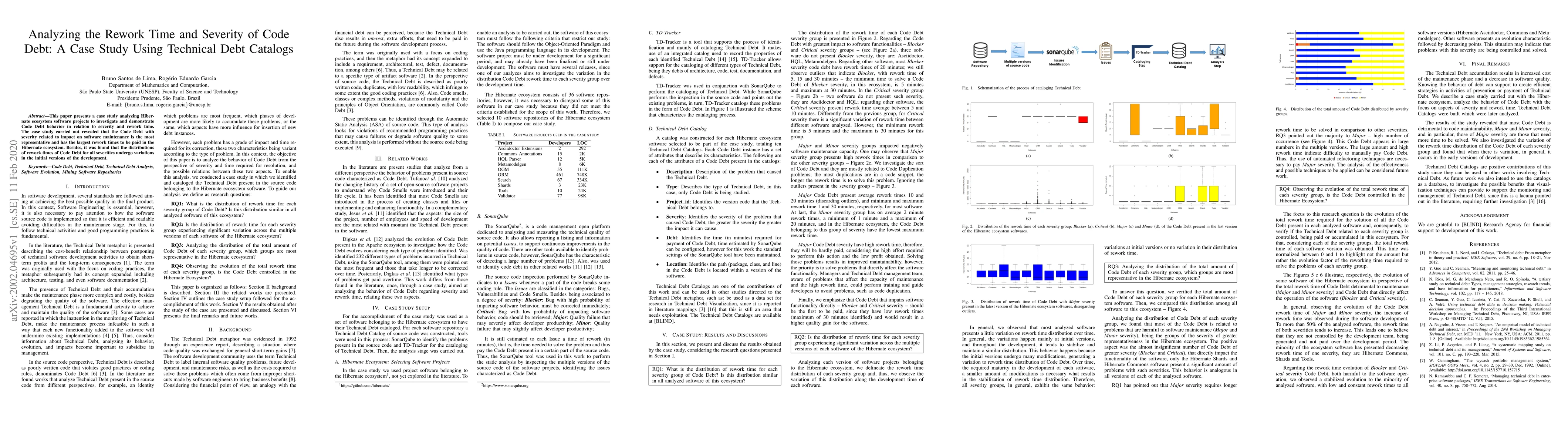 A case study of Hibernate ecosystem software projects found that Code Debt with severity impacting maintenance has the longest rework times. Initial version variations in development show differences in code debt rework time distributions across severities.
