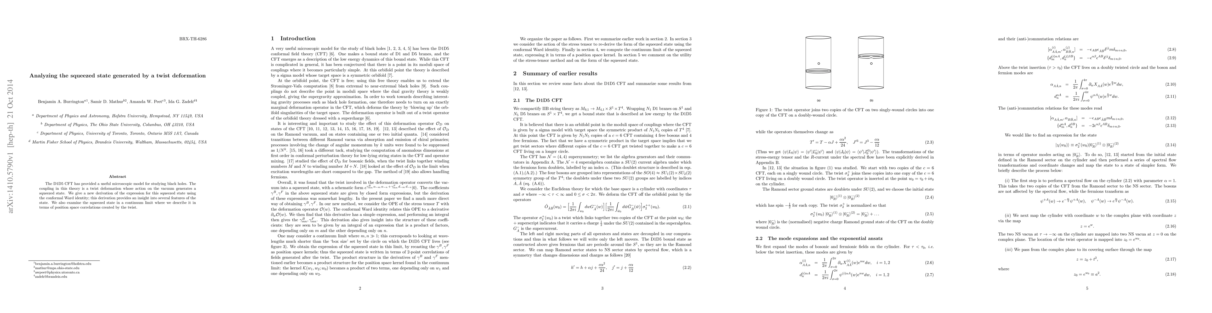 The D1D5 CFT has provided a useful microscopic model for studying black holes. The coupling in this theory is a twist deformation whose action on the vacuum generates a squeezed state. We give a new derivation of the expression for this squeezed state using the conformal Ward identity; this derivation provides an insight into several features of the state. We also examine the squeezed state in a continuum limit where we describe it in terms of position space correlations created by the twist.