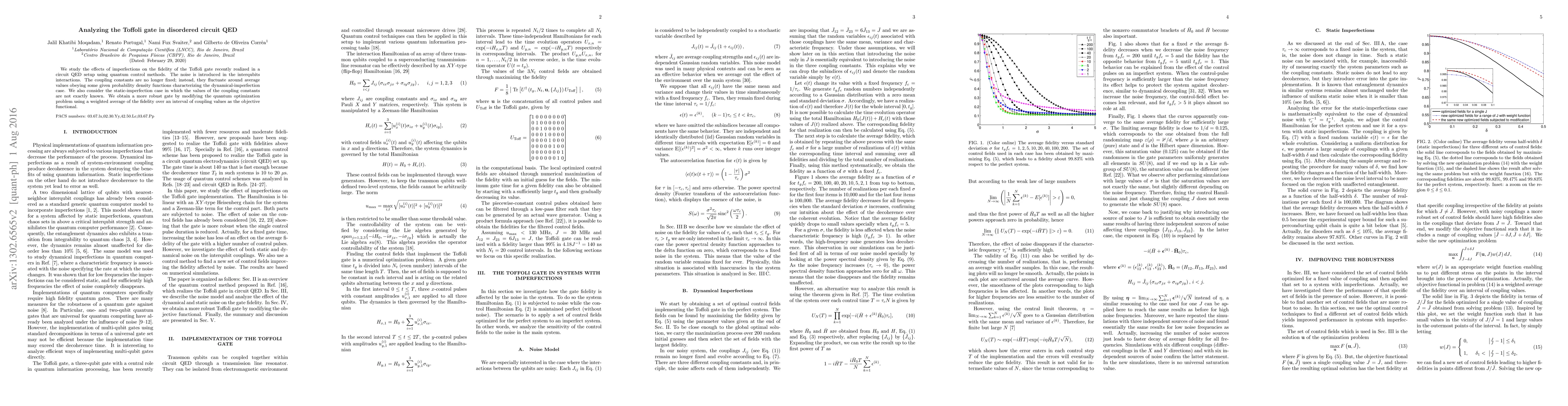This paper investigates the impact of imperfections on the fidelity of a Toffoli gate in a circuit QED system, considering both fluctuating and static coupling constants. It proposes a robust gate design by optimizing the fidelity using a weighted average over a range of coupling values.