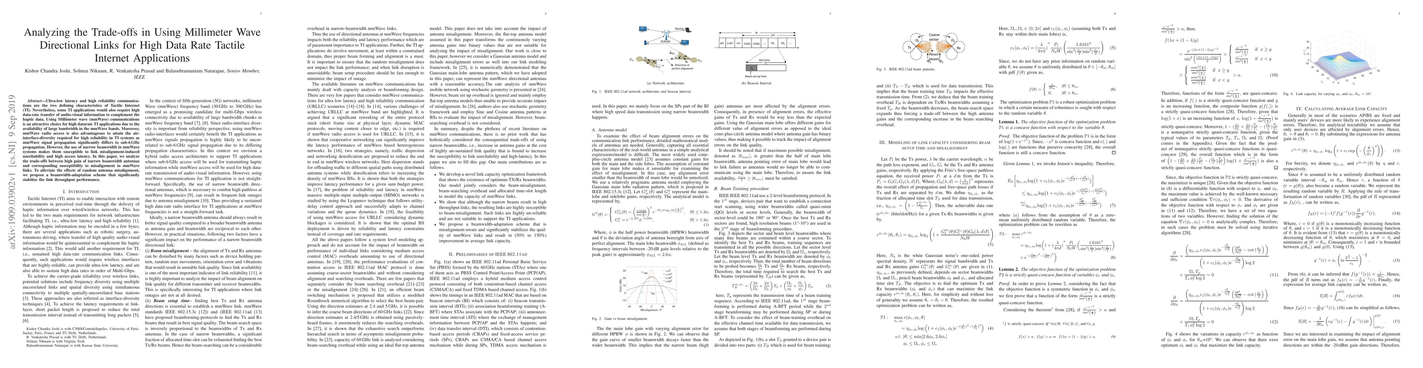 Researchers analyzed the trade-offs of using millimeter wave directional links for high data rate tactile internet applications, finding that beamwidth adaptation can alleviate link reliability issues.