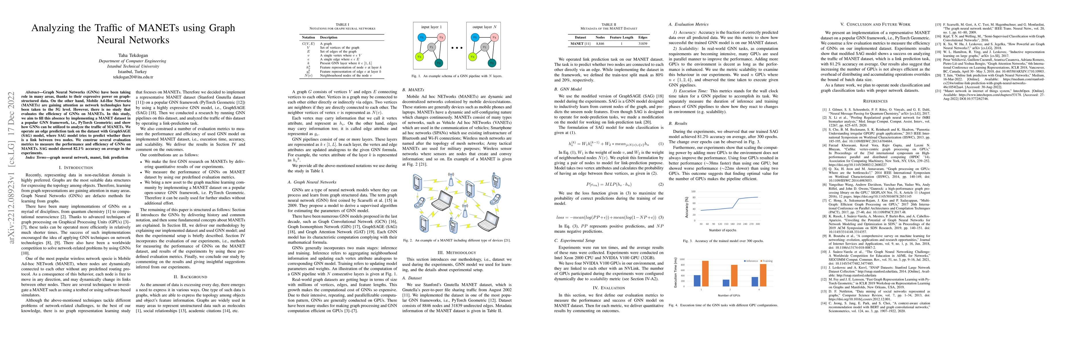 Graph Neural Networks (GNNs) have been taking role in many areas, thanks to their expressive power on graph-structured data. On the other hand, Mobile Ad-Hoc Networks (MANETs) are gaining attention as network technologies have been taken to the 5G level. However, there is no study that evaluates the efficiency of GNNs on MANETs. In this study, we aim to fill this absence by implementing a MANET dataset in a popular GNN framework, i.e., PyTorch Geometric; and show how GNNs can be utilized to analyze the traffic of MANETs. We operate an edge prediction task on the dataset with GraphSAGE (SAG) model, where SAG model tries to predict whether there is a link between two nodes. We construe several evaluation metrics to measure the performance and efficiency of GNNs on MANETs. SAG model showed 82.1 accuracy on average in the experiments.