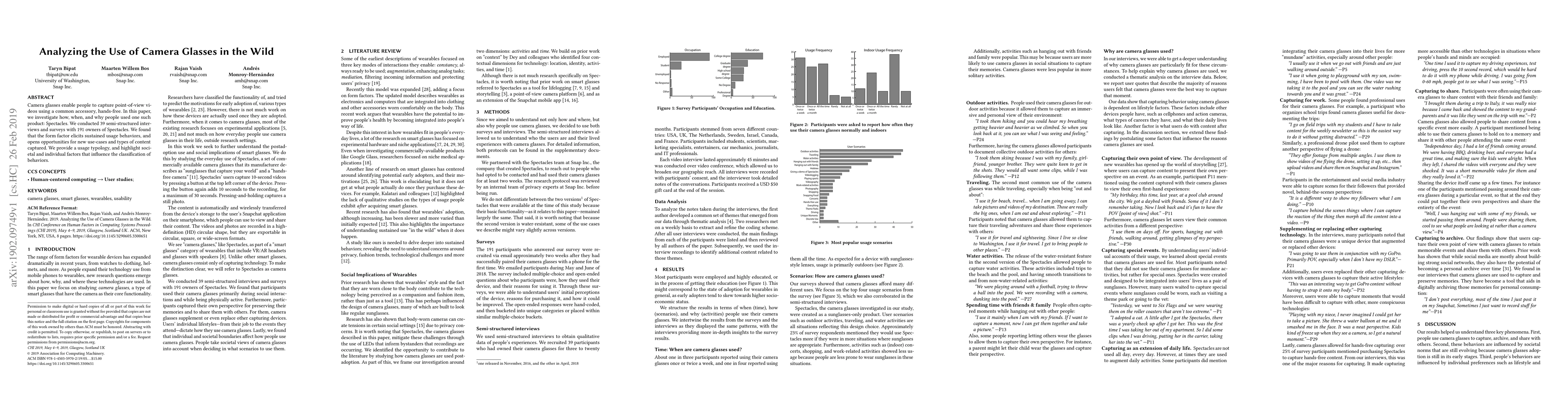 Researchers studied 191 Spectacles owners, finding that camera glasses encourage sustained usage due to their form factor, opening opportunities for new content types and use cases.