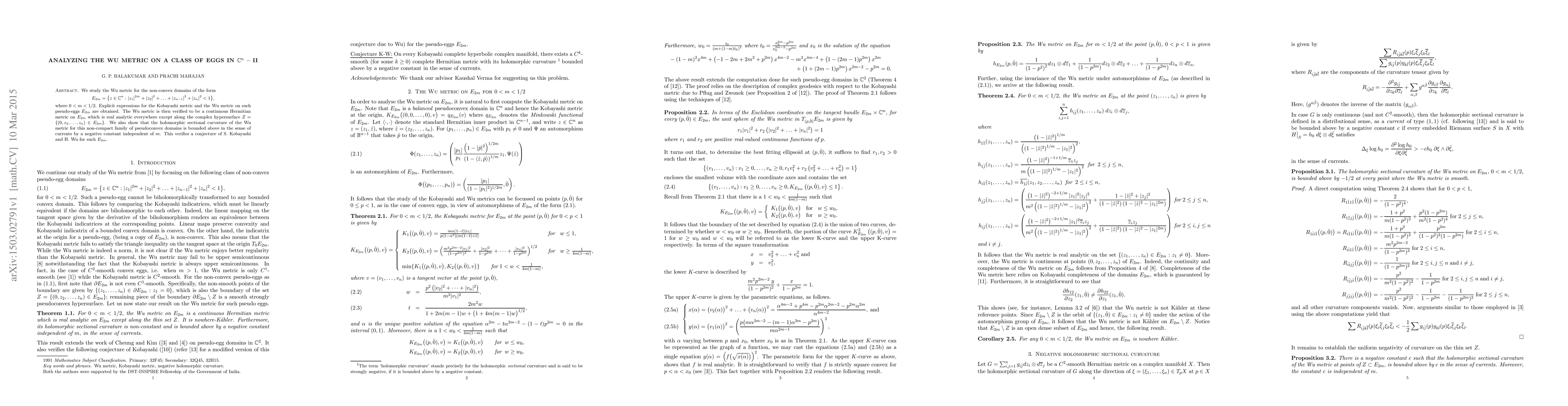 Researchers studied the Wu metric on non-convex pseudo-domains called 'pseudo-eggs' in $ extbb{C}^n$, finding a continuous Hermitian metric that verifies a conjecture of Kobayashi and Wu.