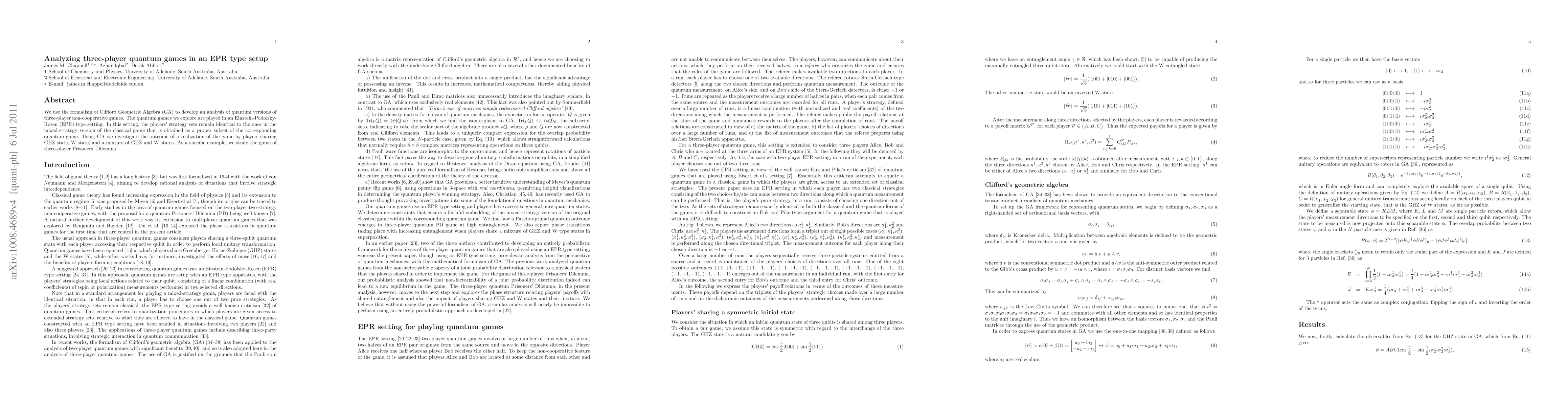 This paper analyzes quantum versions of three-player non-cooperative games using Clifford Geometric Algebra in an EPR setup. It explores outcomes for games played with GHZ, W states, and their mixtures, specifically examining the quantum three-player Prisoners' Dilemma.