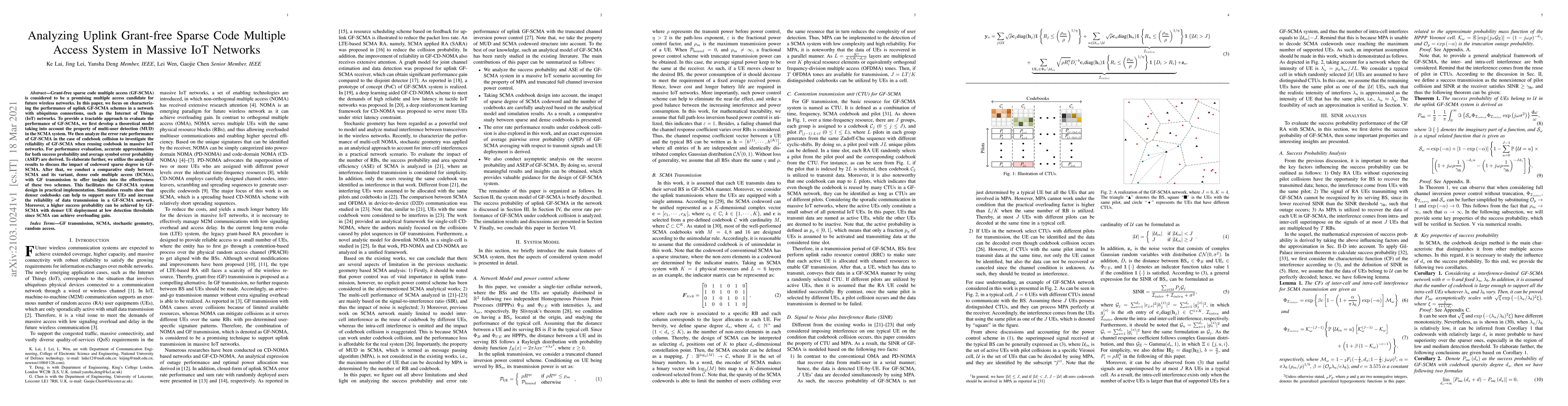 Grant-free sparse code multiple access (GF-SCMA) is considered to be a promising multiple access candidate for future wireless networks. In this paper, we focus on characterizing the performance of uplink GF-SCMA schemes in a network with ubiquitous connections, such as the Internet of Things (IoT) networks. To provide a tractable approach to evaluate the performance of GF-SCMA, we first develop a theoretical model taking into account the property of multi-user detection (MUD) in the SCMA system. We then analyze the error rate performance of GF-SCMA in the case of codebook collision to investigate the reliability of GF-SCMA when reusing codebook in massive IoT networks. For performance evaluation, accurate approximations for both success probability and average symbol error probability (ASEP) are derived. To elaborate further, we utilize the analytical results to discuss the impact of codeword sparse degree in GFSCMA. After that, we conduct a comparative study between SCMA and its variant, dense code multiple access (DCMA), with GF transmission to offer insights into the effectiveness of these two schemes. This facilitates the GF-SCMA system design in practical implementation. Simulation results show that denser codebooks can help to support more UEs and increase the reliability of data transmission in a GF-SCMA network. Moreover, a higher success probability can be achieved by GFSCMA with denser UE deployment at low detection thresholds since SCMA can achieve overloading gain.