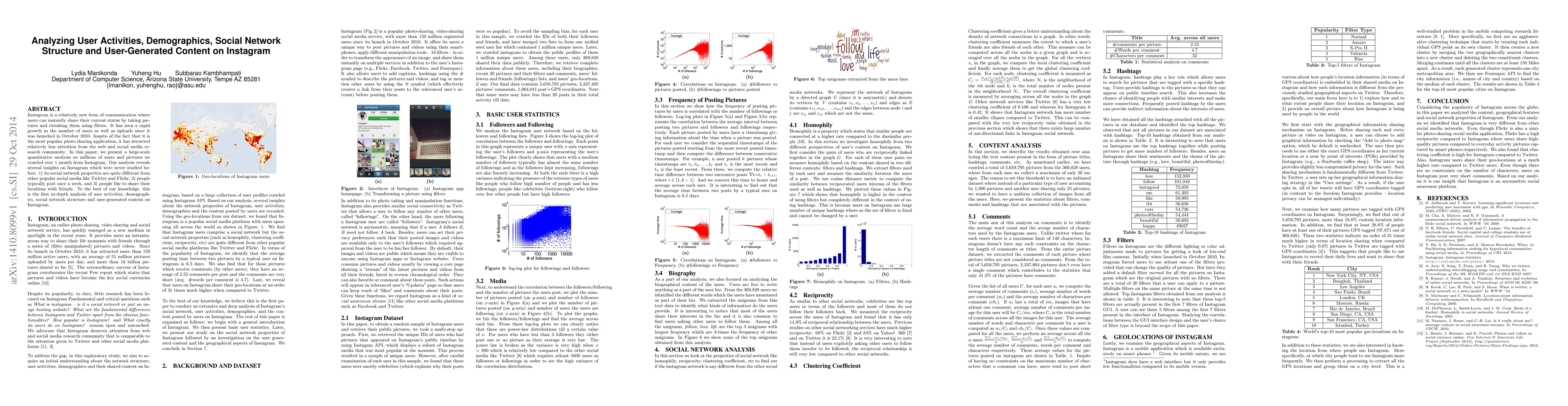 This paper conducts a large-scale quantitative analysis of Instagram, examining user activities, demographics, social network structure, and user-generated content. It reveals unique insights, such as Instagram's distinct social network properties compared to Twitter and Flickr, typical weekly posting frequency, and a tendency to share locations with friends.