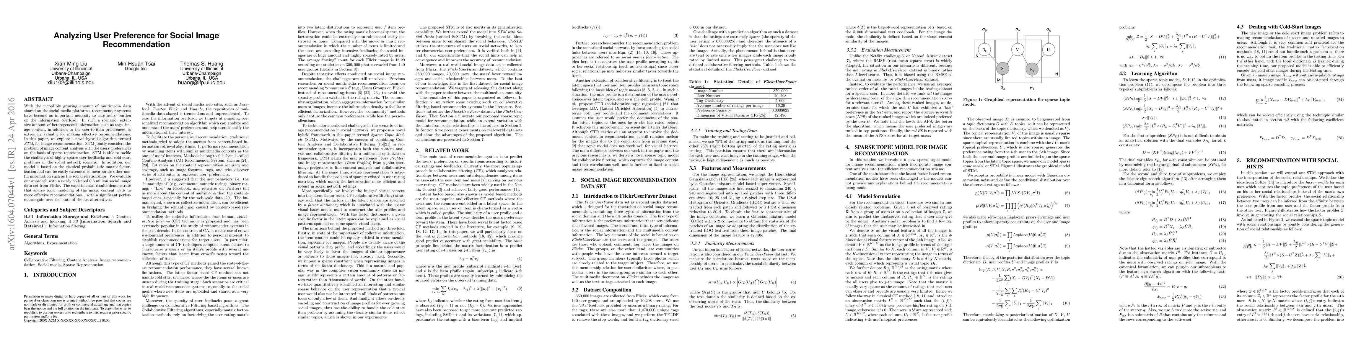 With the incredibly growing amount of multimedia data shared on the social media platforms, recommender systems have become an important necessity to ease users' burden on the information overload. In such a scenario, extensive amount of heterogeneous information such as tags, image content, in addition to the user-to-item preferences, is extremely valuable for making effective recommendations. In this paper, we explore a novel hybrid algorithm termed {\em STM}, for image recommendation. STM jointly considers the problem of image content analysis with the users' preferences on the basis of sparse representation. STM is able to tackle the challenges of highly sparse user feedbacks and cold-start problmes in the social network scenario. In addition, our model is based on the classical probabilistic matrix factorization and can be easily extended to incorporate other useful information such as the social relationships. We evaluate our approach with a newly collected 0.3 million social image data set from Flickr. The experimental results demonstrate that sparse topic modeling of the image content leads to more effective recommendations, , with a significant performance gain over the state-of-the-art alternatives.