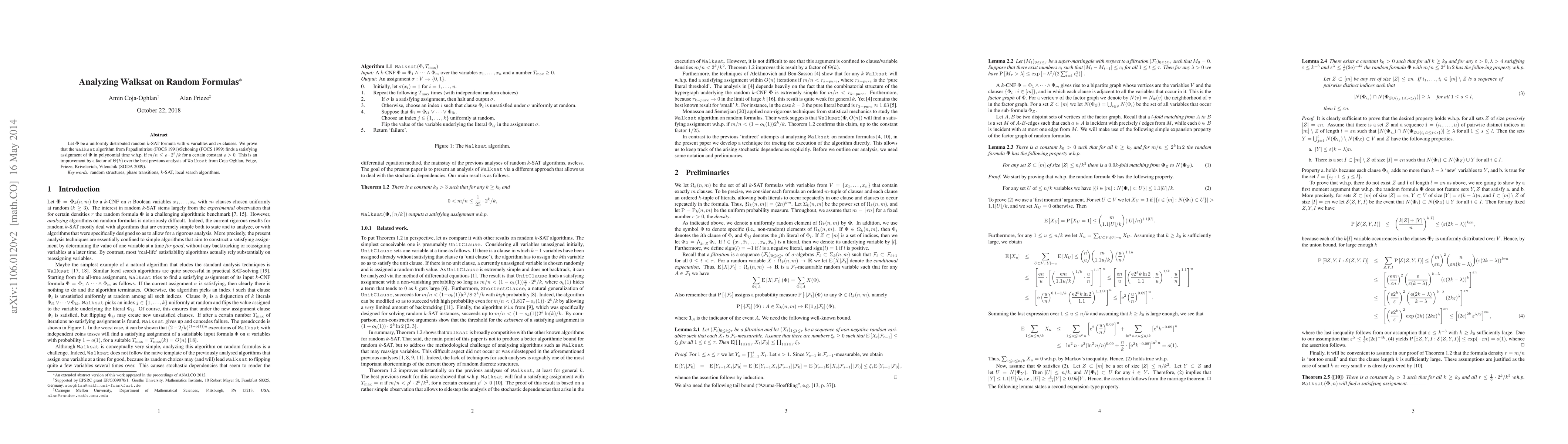 The paper presents a rigorous probabilistic analysis of the Walksat algorithm, providing a refined threshold for polynomial-time success on random k-SAT formulas, which is a significant advancement in the field of algorithmic satisfiability.