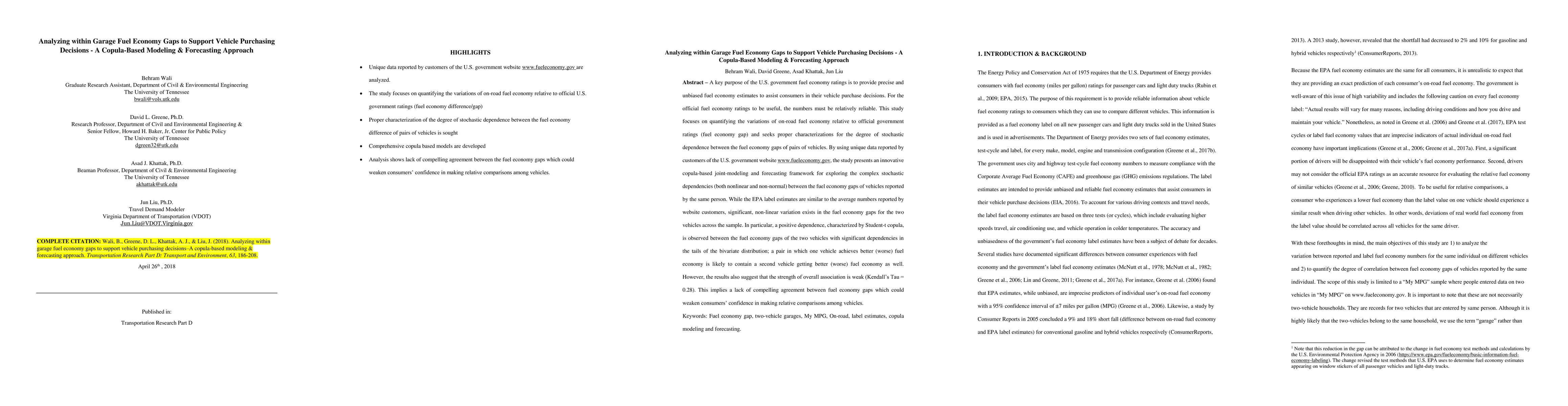 A key purpose of the U.S. government fuel economy ratings is to provide precise and unbiased fuel economy estimates to assist consumers in their vehicle purchase decisions. For the official fuel economy ratings to be useful, the numbers must be relatively reliable. This study focuses on quantifying the variations of on-road fuel economy relative to official government ratings (fuel economy gap) and seeks proper characterizations for the degree of stochastic dependence between the fuel economy gaps of pairs of vehicles.By using unique data reported by customers of the U.S. government website www.fueleconomy.gov, the study presents an innovative copula-based joint-modeling and forecasting framework for exploring the complex stochastic dependencies (both nonlinear and non-normal) between the fuel economy gaps of vehicles reported by the same person. While the EPA label estimates are similar to the average numbers reported by website customers, significant, non-linear variation exists in the fuel economy gaps for the two vehicles across the sample. In particular, a positive dependence, characterized by Student-t copula, is observed between the fuel economy gaps of the two vehicles with significant dependencies in the tails of the bivariate distribution; a pair in which one vehicle achieves better (worse) fuel economy is likely to contain a second vehicle getting better (worse) fuel economy as well. However, the results also suggest that the strength of overall association is weak (Kendall Tau = 0.28). This implies a lack of compelling agreement between fuel economy gaps which could weaken consumers confidence in making relative comparisons among vehicles.