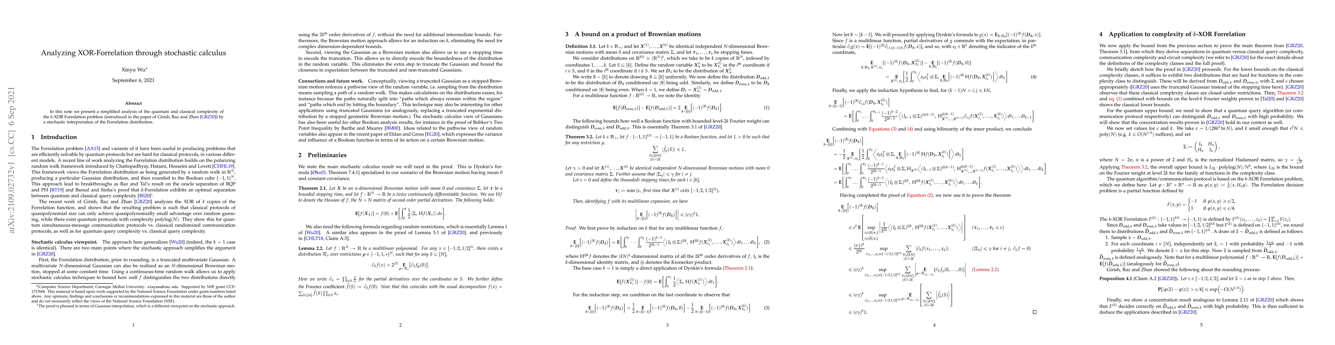In this note we present a simplified analysis of the quantum and classical complexity of the $k$-XOR Forrelation problem (introduced in the paper of Girish, Raz and Zhan) by a stochastic interpretation of the Forrelation distribution.