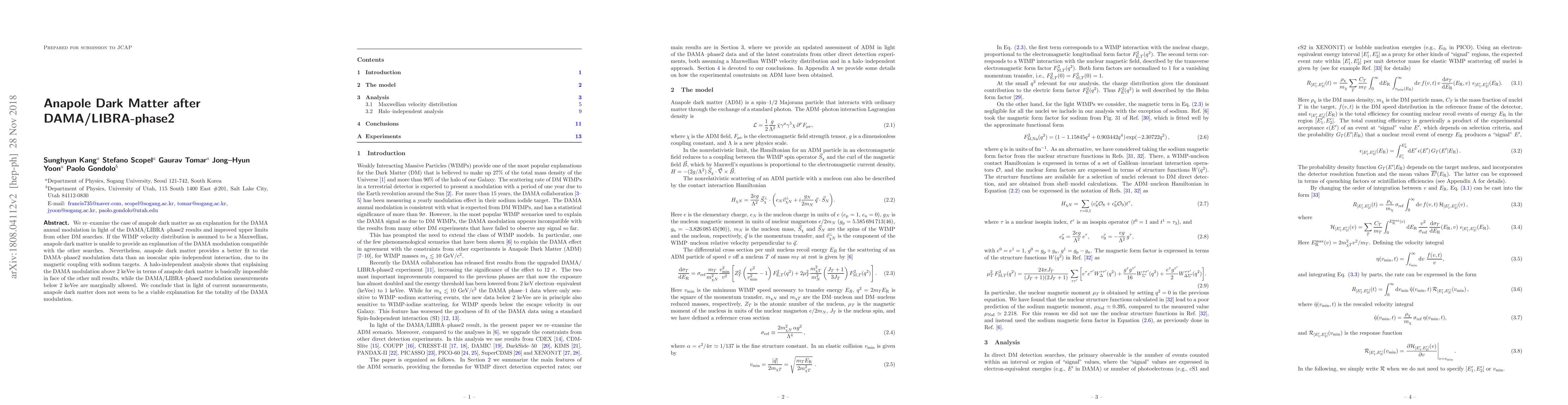 This paper re-examines anapole dark matter as a potential explanation for DAMA's annual modulation results, finding that while it fits DAMA/LIBRA-phase2 data better than isoscalar interactions, it cannot reconcile with other dark matter search results. Thus, anapole dark matter is deemed unlikely to fully explain the DAMA modulation.