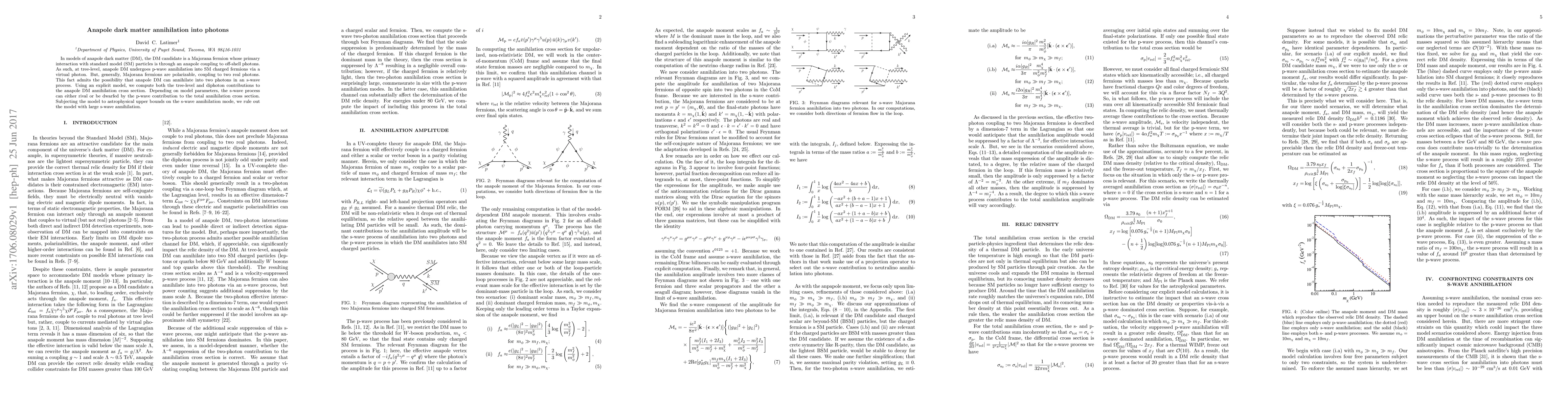 This paper explores the annihilation of anapole dark matter (DM) into photons, focusing on both p-wave and s-wave annihilation processes. It finds that while p-wave annihilation dominates, s-wave annihilation can be significant depending on the model parameters, but astrophysical constraints rule out scenarios with large s-wave contributions.