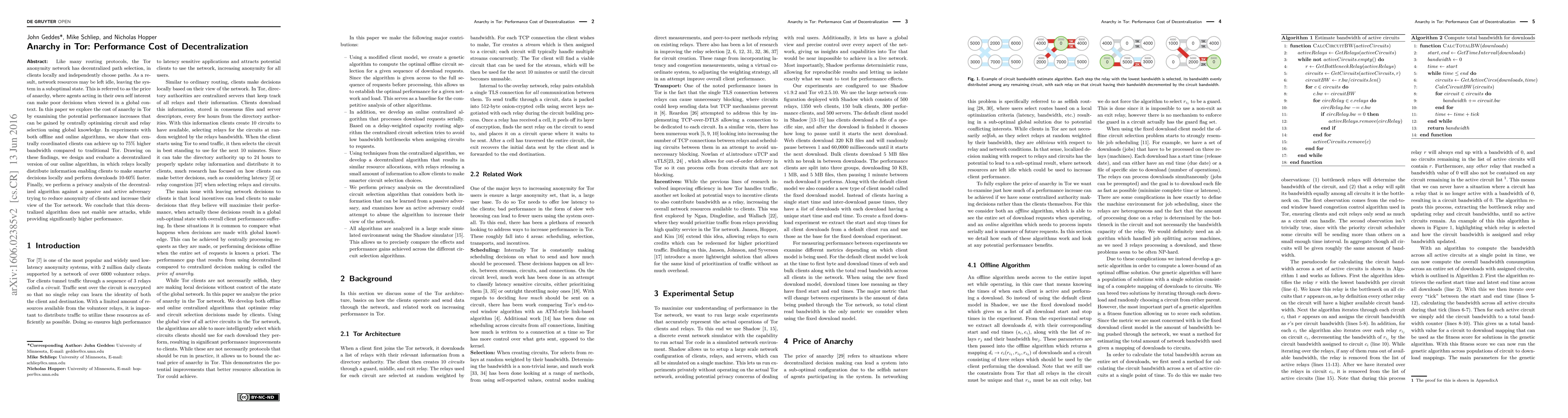 Like many routing protocols, the Tor anonymity network has decentralized path selection, in clients locally and independently choose paths. As a result, network resources may be left idle, leaving the system in a suboptimal state. This is referred to as the price of anarchy, where agents acting in their own self interest can make poor decisions when viewed in a global context. In this paper we explore the cost of anarchy in Tor by examining the potential performance increases that can be gained by centrally optimizing circuit and relay selection using global knowledge. In experiments with both offline and online algorithms, we show that centrally coordinated clients can achieve up to 75% higher bandwidth compared to traditional Tor. Drawing on these findings, we design and evaluate a decentralized version of our online algorithm, in which relays locally distribute information enabling clients to make smarter decisions locally and perform downloads 10-60% faster. Finally, we perform a privacy analysis of the decentralized algorithm against a passive and active adversary trying to reduce anonymity of clients and increase their view of the Tor network. We conclude that this decentralized algorithm does not enable new attacks, while providing significantly higher performance.