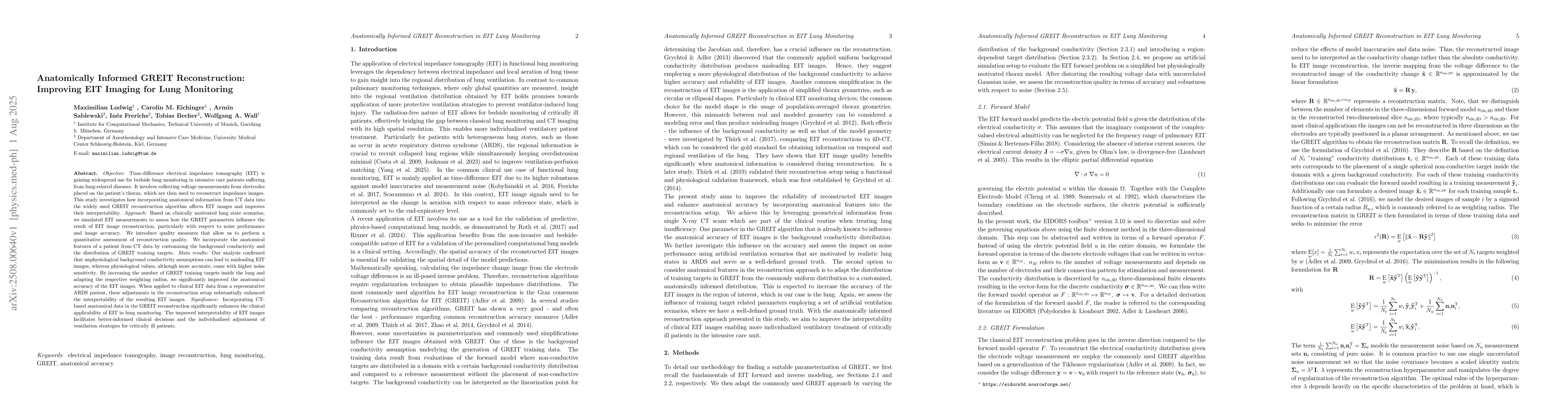 Objective: Time-difference electrical impedance tomography (EIT) is gaining widespread use for bedside lung monitoring in intensive care patients suffering from lung-related diseases. It involves collecting voltage measurements from electrodes placed on the patient's thorax, which are then used to reconstruct impedance images. This study investigates how incorporating anatomical information from CT data into the widely used GREIT reconstruction algorithm affects EIT images and improves their interpretability. Approach: Based on clinically motivated lung state scenarios, we simulated EIT measurements to assess how the GREIT parameters influence the result of EIT image reconstruction, particularly with respect to noise performance and image accuracy. We introduce quality measures that allow us to perform a quantitative assessment of reconstruction quality. Anatomical features from CT data were included by customizing background conductivity and GREIT training target distribution. Main results: Our analysis confirmed that unphysiological background conductivity assumptions can lead to misleading EIT images, whereas physiological values, although more accurate, come with higher noise sensitivity. By increasing the number of GREIT training targets inside the lung and adapting the respective weighting radius, we significantly improved the anatomical accuracy of the EIT images. When applied to clinical EIT data from a representative ARDS patient, these adjustments in the reconstruction setup substantially enhanced the interpretability of the resulting EIT images. Significance: Integrating CT-based anatomical data in the GREIT reconstruction significantly enhances the clinical applicability of EIT in lung monitoring. The improved interpretability of EIT images facilitates better-informed clinical decisions and the individualized adjustment of ventilation strategies for critically ill patients.