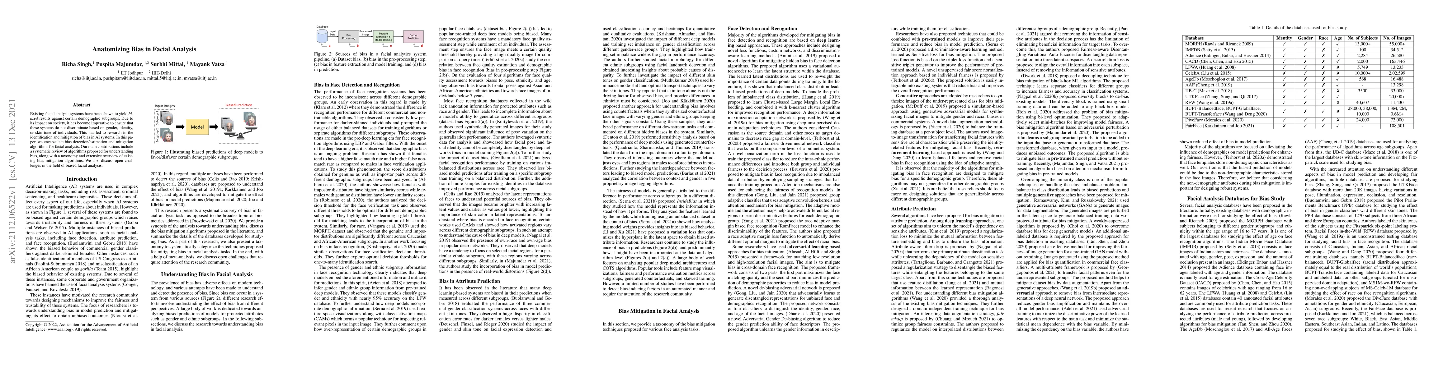 The paper presents a systematic review and taxonomy of bias detection/estimation and mitigation algorithms in facial analysis, discussing open challenges in the field.