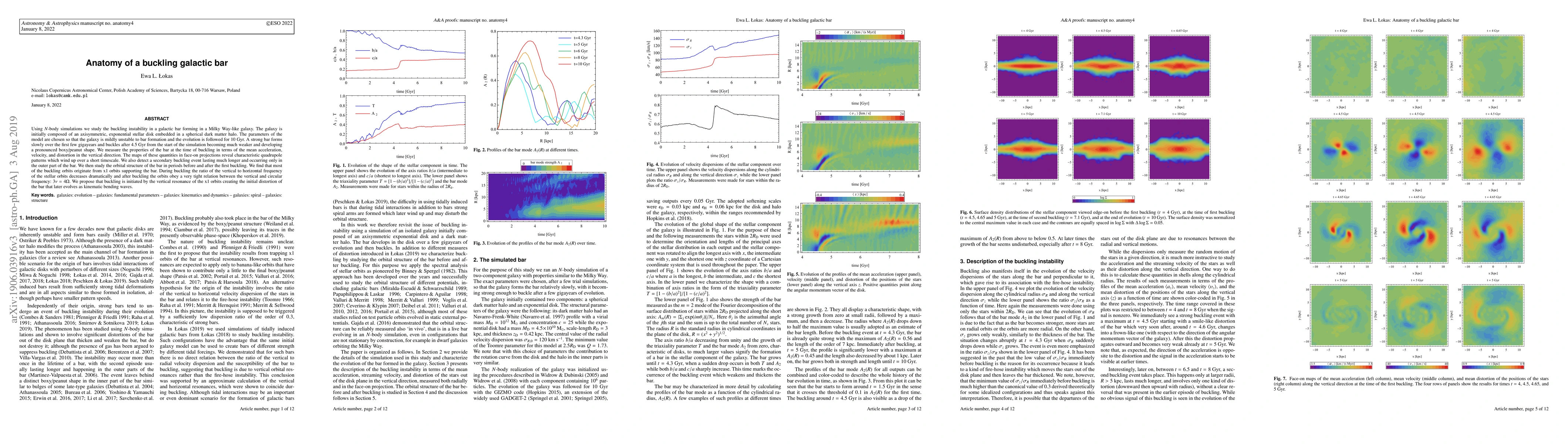 Researchers used N-body simulations to study buckling in a galactic bar, finding that it forms slowly and then suddenly buckles after 4.5 Gyr, leading to a boxy/peanut shape.