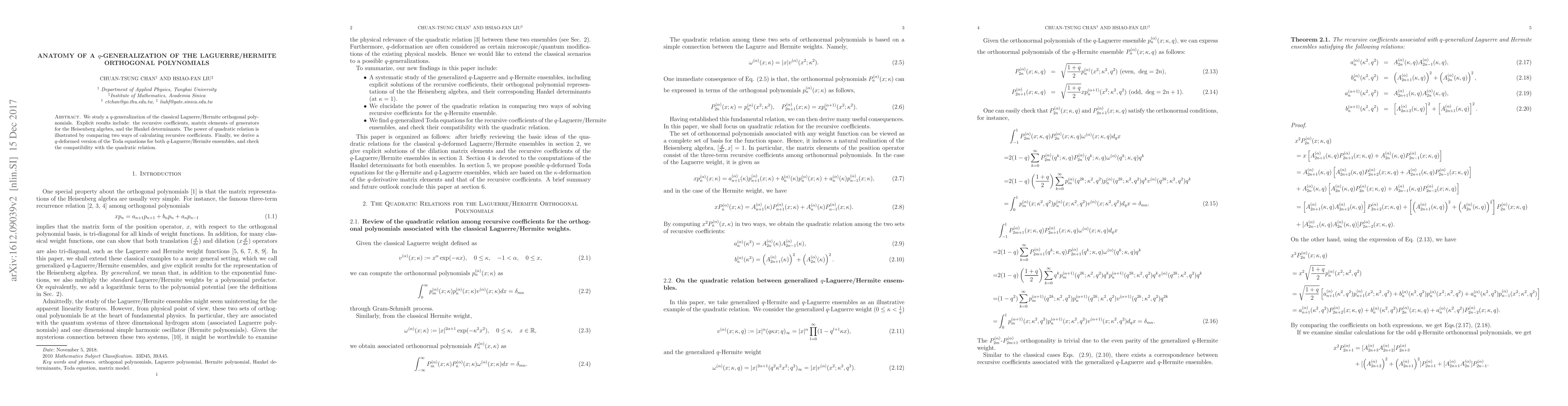 This paper explores a q-generalization of Laguerre and Hermite orthogonal polynomials, detailing recursive coefficients, matrix elements for Heisenberg algebra generators, and Hankel determinants. It also derives a q-deformed version of the Toda equations for these ensembles.