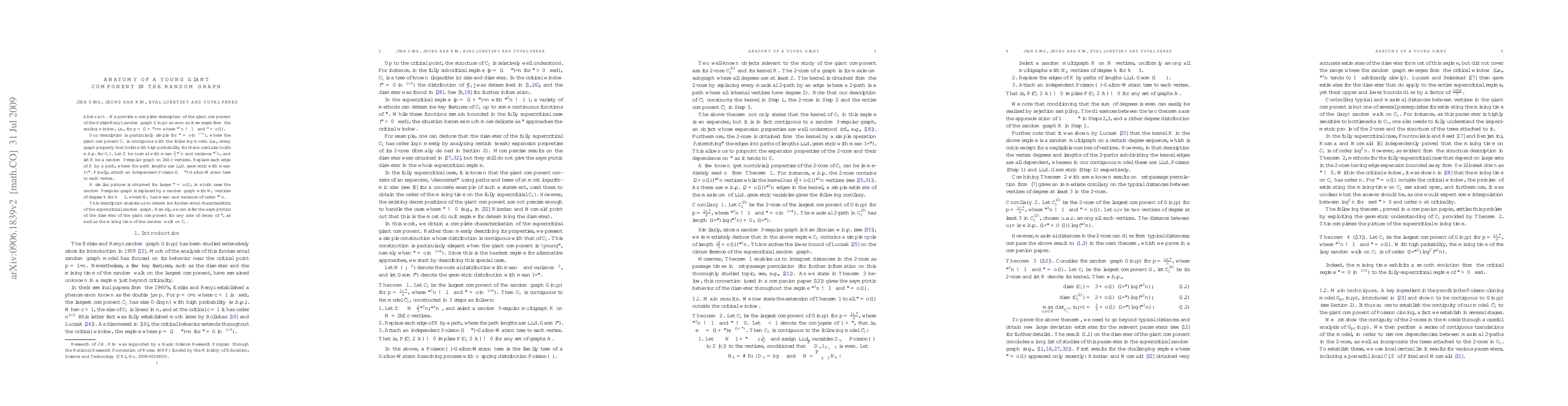 This paper provides a detailed description of the emerging giant component in the Erdős-Rényi random graph model as soon as it forms, revealing its structure for small $\epsilon$ and enabling the determination of its diameter and mixing time. The giant component is modeled by a modified random 3-regular graph and independent Poisson trees.