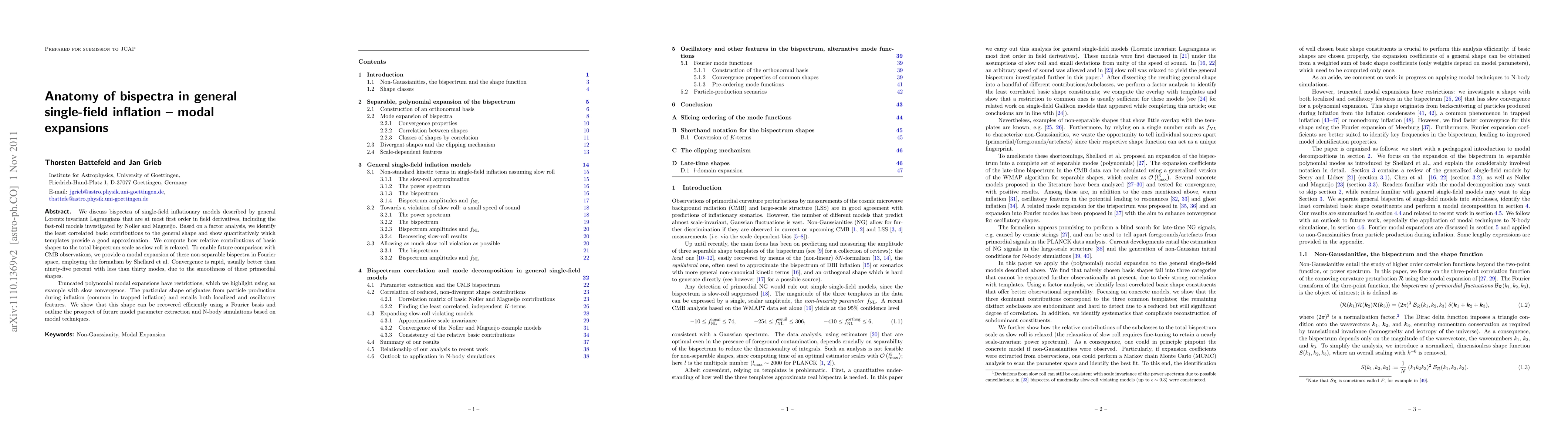 This research paper presents a detailed analysis of bispectra in single-field inflation models, identifying key basic contributions and providing a Fourier modal expansion for comparison with CMB observations. It highlights the rapid convergence of these expansions and demonstrates their utility in model parameter extraction and N-body simulations, even for complex shapes arising from particle production during inflation.