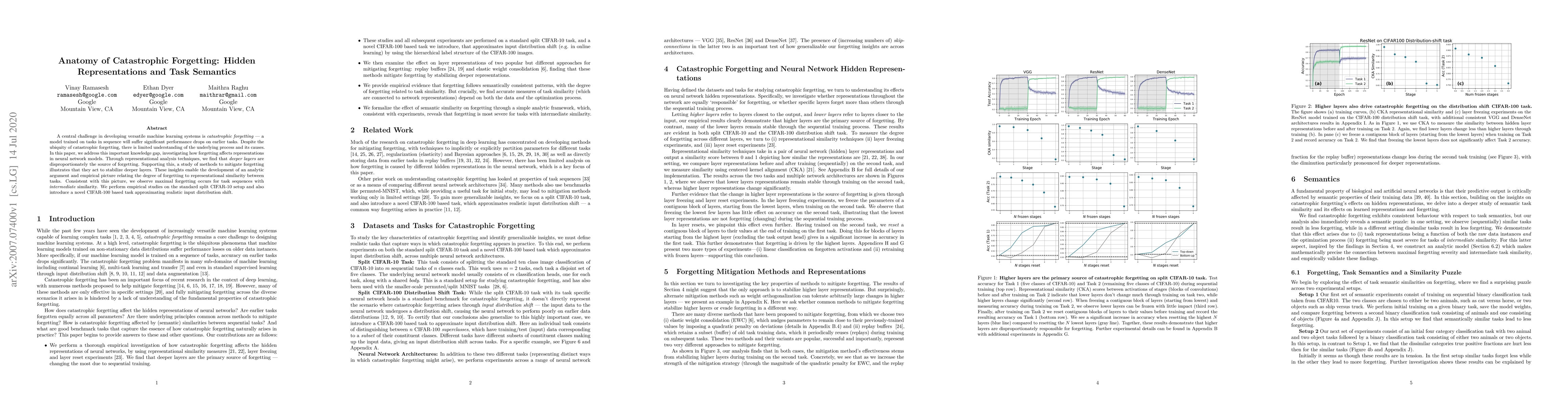 This paper investigates catastrophic forgetting in neural networks, revealing that deeper layers disproportionately contribute to forgetting. It finds that mitigation methods stabilize these layers and shows that maximal forgetting occurs for intermediate task similarity, supported by empirical studies on CIFAR-10 and a new CIFAR-100 dataset.